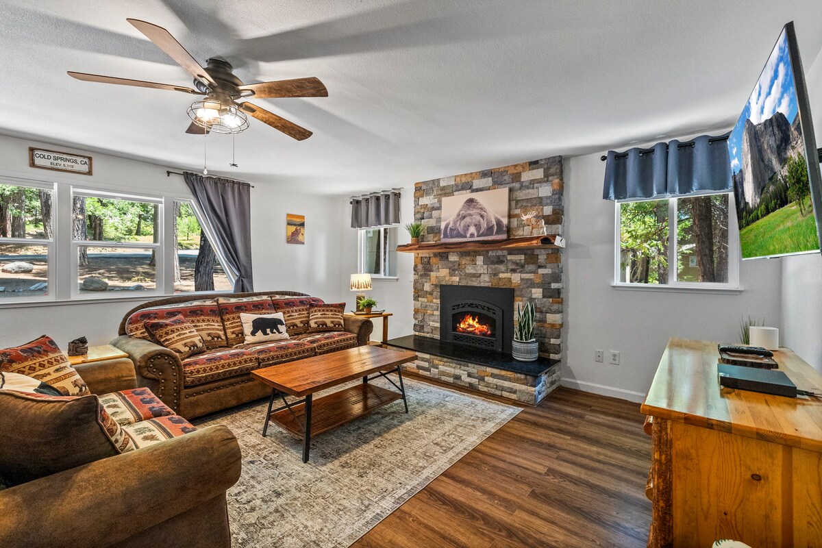 Gawdi ħarba lejn arja tal-muntanji nadifa u nadifa u stil ta 'ħajja rilassat: Ħin tal-Muntanji. Ilwi quddiem il-fireplace sħun u akkoljenti, gawdi cocktails fuq il-gverta l-kbira, u ħu vantaġġ minn attivitajiet fil-beraħ li qatt ma jispiċċaw. Dan is-santwarju tal-muntanji bi tliet kmamar tas-sodda u żewġ kmamar tal-banju jinsab ftit 'il fuq mix-xmara Stanislaus fil-Muntanji Sierra Nevada. Elevazzjoni 5,000 pied. Il-kabina hija mixja qasira mill-pont il-Qadim tal-Frawli u diversi mogħdijiet tal-foresta.