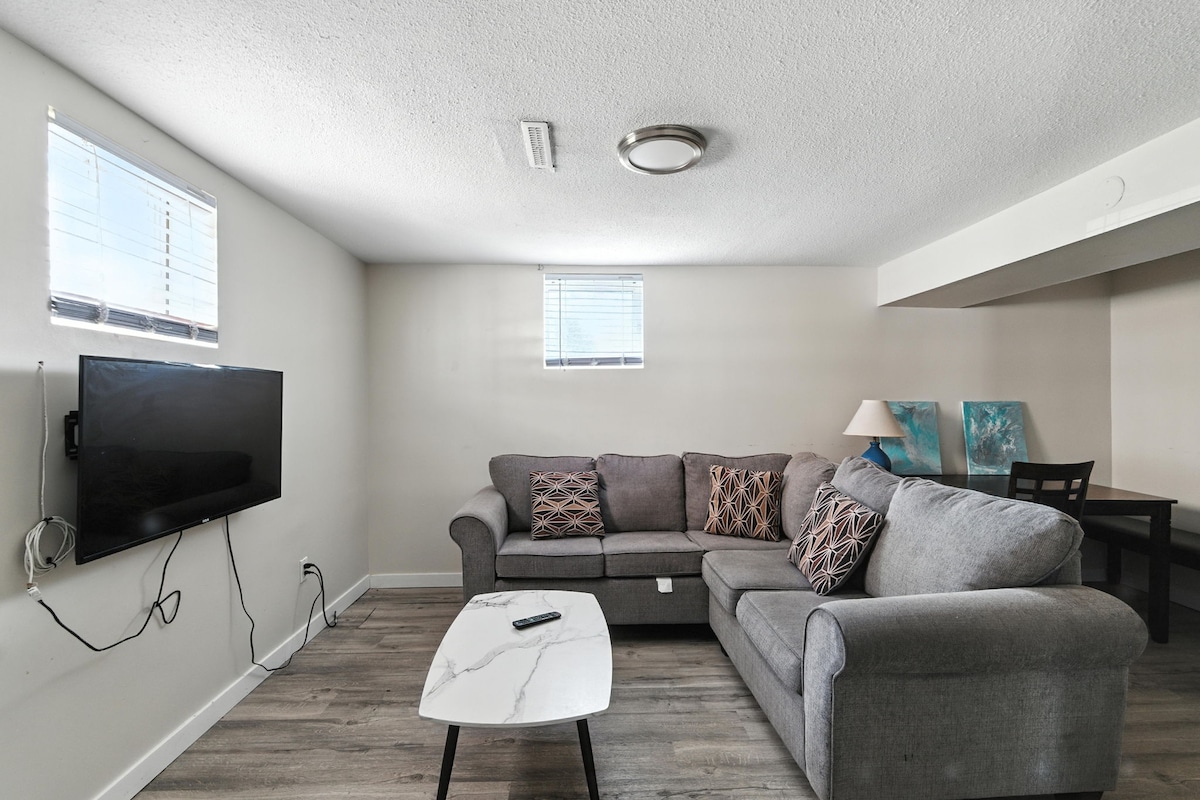 Suite Bright & Cozy Basement – Ideali għax-Xogħol jew għall-Avventura Daħla privata għall-bieb tal-ġenb b' tastiera self checkin • Għall-ħaddiema – Ftit minuti 'l bogħod minn Dow, Scotford, Keyera, Sherritt u IPL • Għall-esploraturi - Segwi backroads piktoreski wara l-prateriji tad-deheb u ż-żwiemel li jirgħu sal-Park Nazzjonali ta' Elk Island • Ixtri, kul jew ixtri l-ħtiġijiet tal-merċa fil-qrib • Jistgħu jintużaw biex jiskuraw il-kamra grazzi għall-blinds tat-twieqi + purtieri għal irqad fil-fond wara xiftijiet twal jew għal filgħodu li trid tistrieħ • TV 360° – Ara Netflix mill-kċina jew mis-sodda • WIFI