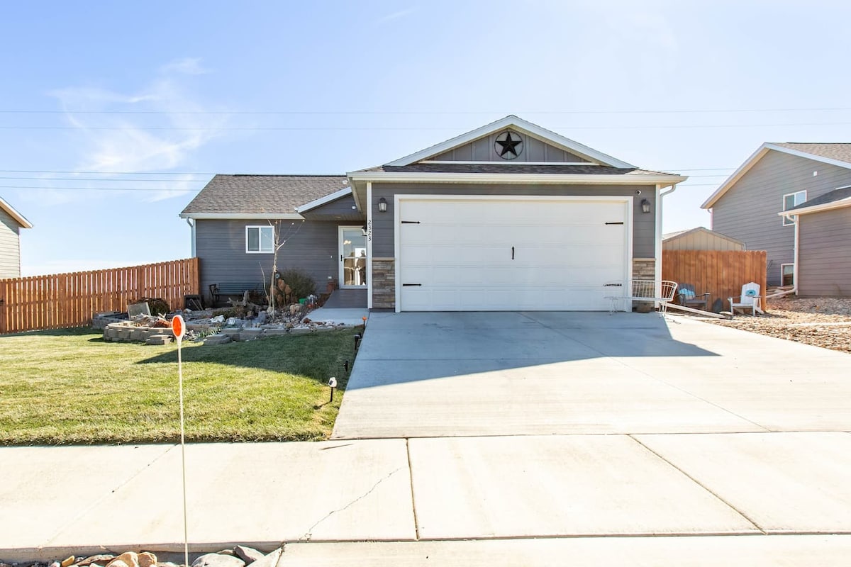 2 Sodod u 1.5 banju li jinsabu 4 blokok 'il bogħod miċ-ċentru ta' Sturgis! Viċinat sabiħ! - Televixin fil-kamra tas-sodda ewlenija u fis-salott b' Amazon Prime Video, Netflix u YouTube TV. -Wifi -Sampoo, conditioner u body wash kemm għall-irġiel kif ukoll għan-nisa -Grill -Magna tal-ħasil/dryer b' lożor tad-deterġent u dryer disponibbli -Magna tal-kafè u tal-kafè (stil ta' dripp) -L-ebda qtates aċċettati -L-ebda klieb 'il fuq minn 40 lbs jew inqas minn sentejn ma huma permessi -L-ebda użu ta' bini għal kwalunkwe xogħol ta' bini jew ħażna ta' materjal tal-bini.