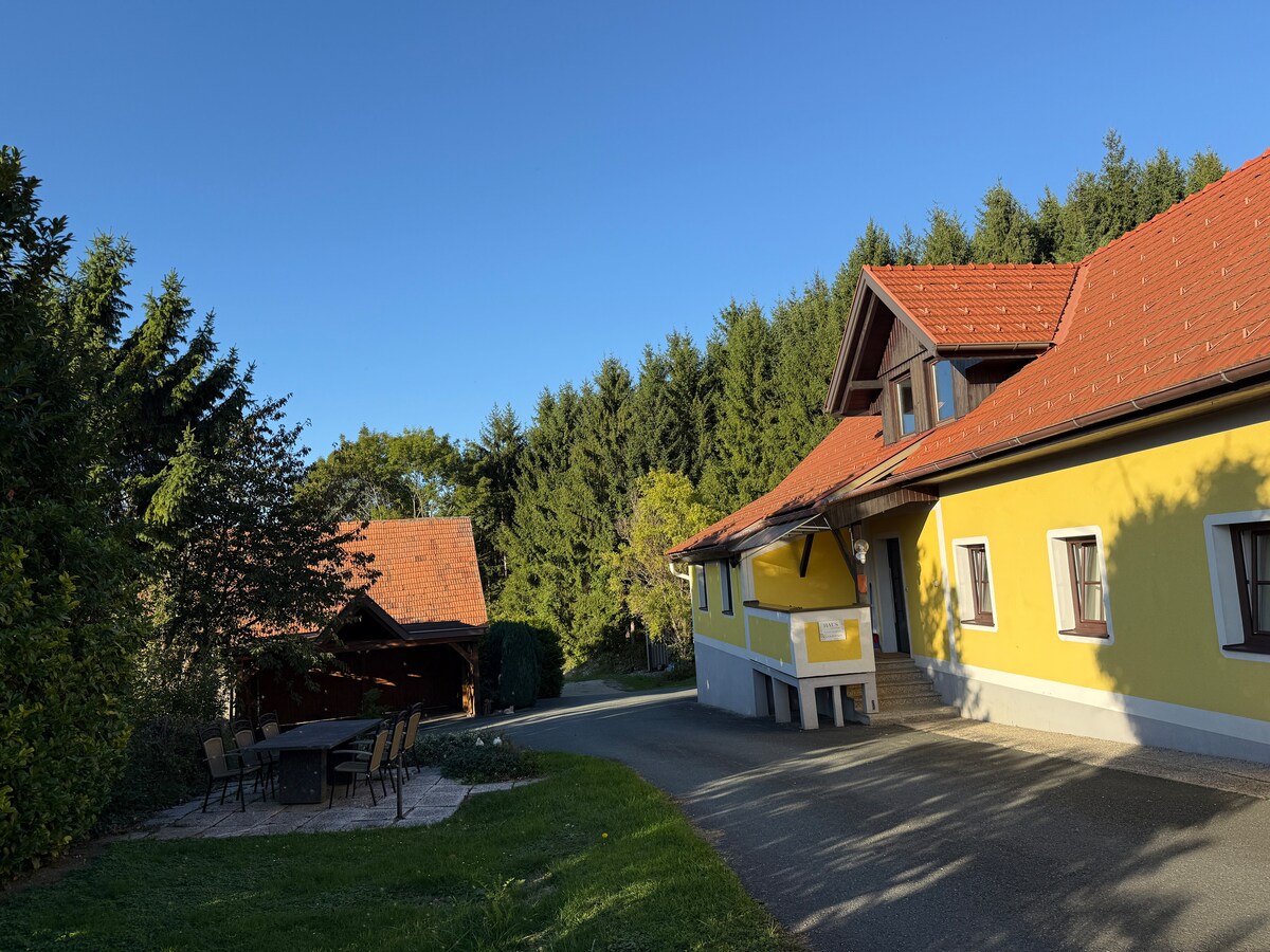 Von dieser zentral gelegenen Unterkunft aus bist du mit dem Auto in ca 20 Minuten an allen wichtigen Orten der Süd- und Oststeiermark, Graz und Slowenien. Auf die kleinen Gäste wartet ein sicherer Spielplatz mit Schaukel, Sandkasten, Tretfahrzeugen und einiges mehr für eine unbeschwerte Zeit abseits von Trubel und Lärm. Radfahrer haben direkten Anschluß an das Radwegnetz. Erholsame entspannende Waldspaziergänge direkt vom Haus weg lassen deine Seele aufatmen.