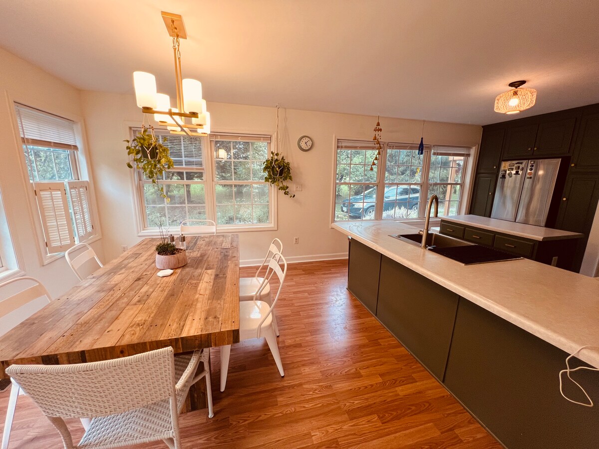 Merħba f' Tequila Sunset fil-Harpers Ferry, WV! Din id-dar sabiħa u maqtugħa għandha veduti tax-xemx mill-isbaħ, inti se tħossok verament fil-quċċata tad-dinja! 100 mil vista tal-Muntanji mill-isbaħ Blue Ridge. L-ewwel sular kollu huwa tiegħek, l-ebda spazju maqsum mal-oħrajn! Aktar minn 1200 SF ta 'kamra biex taqla' l-plagg u tirrilassa. Sodda King size Nectar, fireplace komdu tal-injam fuq ġewwa, firepit fuq barra, TV 84"u veranda privata biex tgawdi l-ambjent naturali. Kemm 2 mili 'l bogħod mill-Klabb magħruf tal-Lag tal-Muntanji u l-Mogħdija Appalachian!