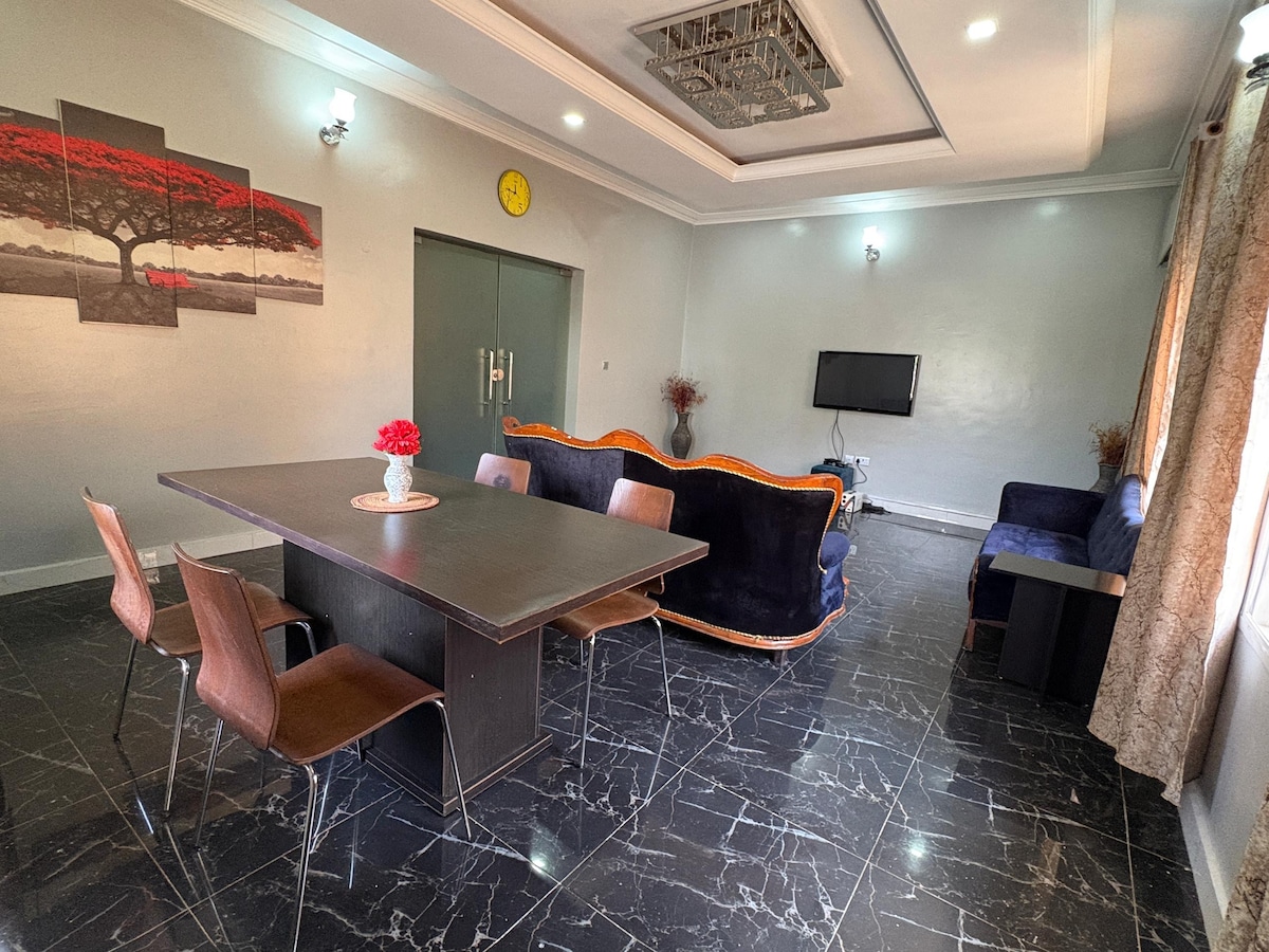 Suite pinewood , Appartament kontemporanju b 'żewġt ikmamar tas-sodda mgħammar intenzjonalment miegħek. Ix-xogħol tal-injam huwa uniku u dettaljat biex jagħti lill-klijenti tagħna esperjenza li ma tintesiex f 'ambjent nadif. Huwa mgħammar b 'smart Tv, bieb intelliġenti, wifi veloċi u effiċjenti, Pixxina tal-għawm, tennis tal-mejda, mejda snooker, ġeneratur standby, unitajiet tal-arja kkundizzjonata li jaħdmu bl-enerġija solari, ħiters tal-ilma u kunċett tal-kċina tal-pjan miftuħ mgħammar b' mod sħiħ. Ħu gost mal-familja kollha f 'dan il-post eleganti.