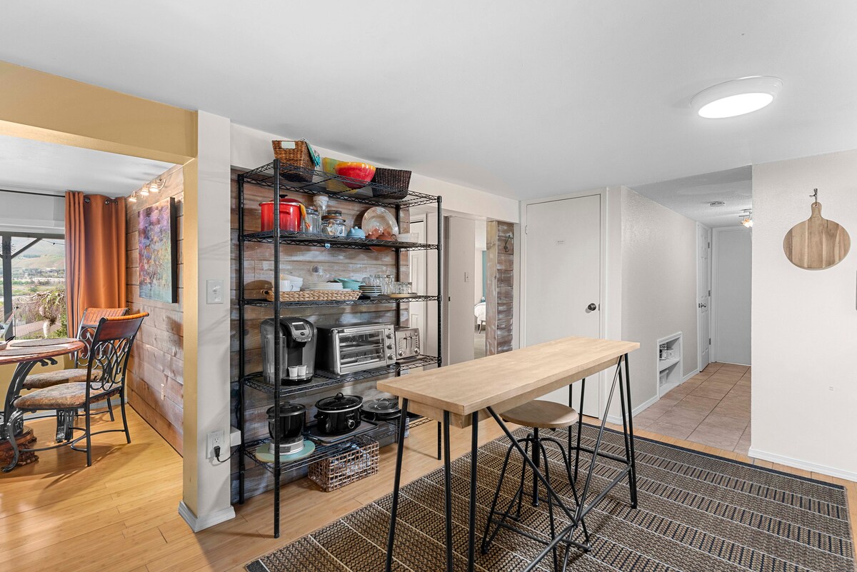 Ridge Retreat jinsab fiċ-ċentru f' viċinat kwiet. Se jkollok il-privatezza kollha f' dan l-appartament komdu tas-sular t' isfel. Hemm sodda queen waħda u s-sufan huwa futon li jinfetaħ f' sodda sħiħa. Il-bjankerija tas-sodda għall-futon tinsab fil-gwardarobba tal-kamra tas-sodda u tinkludi topper tal-fowm. L-istazzjon tal-qoxra/mini mart u l-mogħdija tal-linja ta' Apple Capital jinsabu inqas minn mil 'il bogħod. Leavenworth, Lake Chelan u Mission Ridge ivarjaw minn 25-40 minuta 'l bogħod u l-Amfiteatru Gorge huwa inqas minn siegħa sewqan.