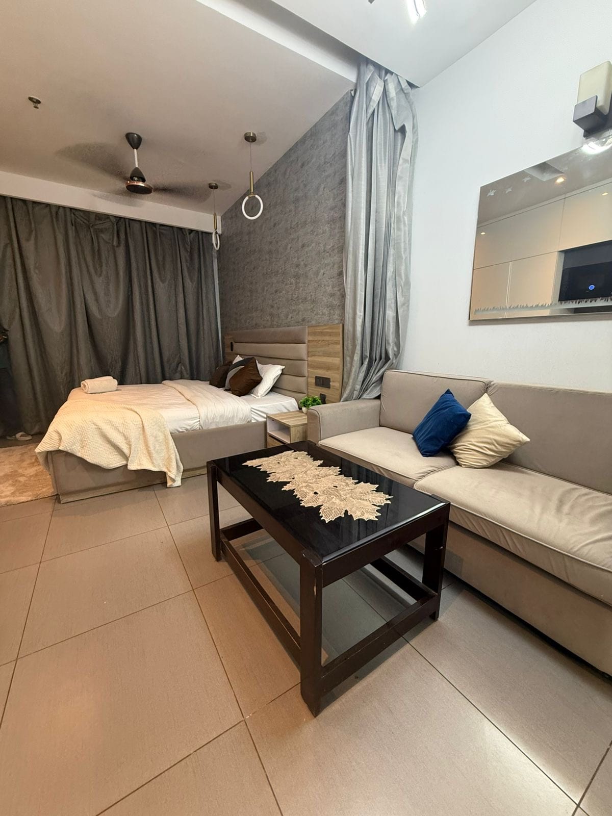 Merħba f'Edyll by Rivique Inn, l-iktar binja residenzjali għolja tal-Indja ta' Fuq. L-istudjo tagħna mfassal bi ħsieb joffri dak kollu li teħtieġ għal żjara rilassanti u konvenjenti, inkluż kċina moderna mgħammra b' kollox u Wi-Fi b' veloċità għolja. Kemm jekk qiegħed hawn biex tirrilassa, taħdem mid-dar jew tiskopri Noida, ħloqna l-ispazju perfett għalik. Aħna impenjati li nagħmlu ż-żjara tiegħek faċli, pjaċevoli u verament mill-isbaħ. Ninsabu kuntenti li nilqgħuk — u nistennew bil-ħerqa li nilqgħuk dalwaqt! 🙌🏻