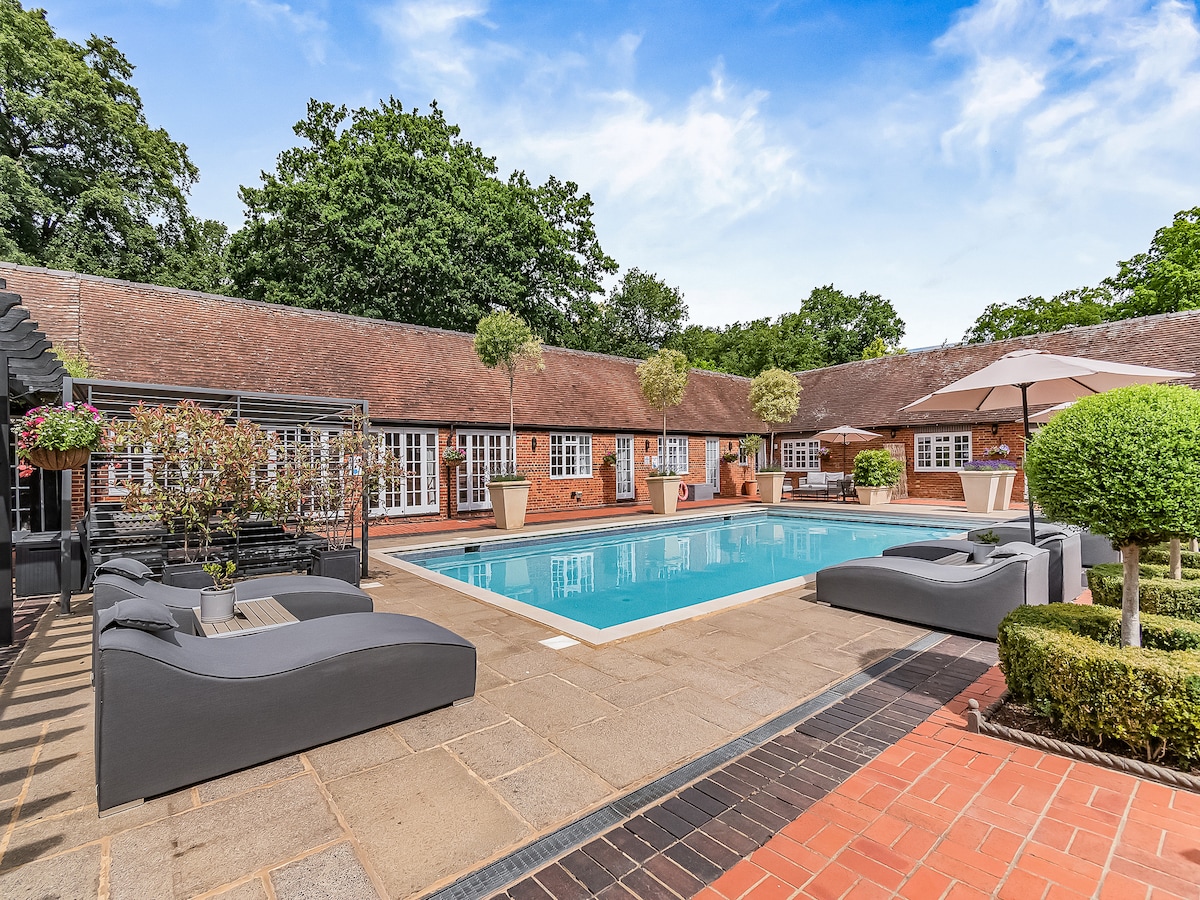 Ebda PARTY/AVVENIMENTI. Adattat għall-familja/tfal, Mehmuża mad-dar tagħna, il-propjetà magħluqa, Surrey Hills Spa & Pool, pixxina privata msaħħna, sawna, kamra tal-fwar u hot tub fuq barra u grawnd tat-tennis. Il-faċilitajiet Spa se jkunu kompletament privati għall-użu tiegħek bejn l -10:00 u d -21:00. Il-pixxina msaħħna, il-kamra tal-fwar, is-sawna u l-hot tub jistgħu jintużaw matul is-sena kollha. Parkeġġ bla ħlas fuq il-post kif ukoll grawnd tat-tennis fuq barra. Żewġ ikmamar tas-sodda, b' ensuites sodda king-size u żewġ singles u sofabed għat-tfal.