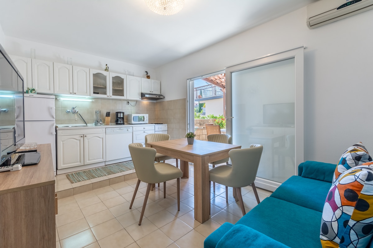 Appartament modernament imżejjen Marina hija ideali għal familja ta 'erba'. Hija toffri lill-klijenti rilassament fil-pool, rilassament fuq iż-żona sunbathing u veduta sabiħa mill-terrazzin tal-baħar u ċ-ċentru tal-villaġġ. L-appartament għandu żewġt ikmamar tas-sodda, kċina, salott, kamra tal-banju u żewġ terrazzi. Huwa arja kondizzjonata u għandha wi-fi, barbecue u parkeġġ privat. L-appartament jinsab f 'parti kwieta tal-belt, biss 200 m bogħod mill-kumditajiet kollha, ristoranti, kafetteriji, suq tal-ħut, promenade, bajja..
