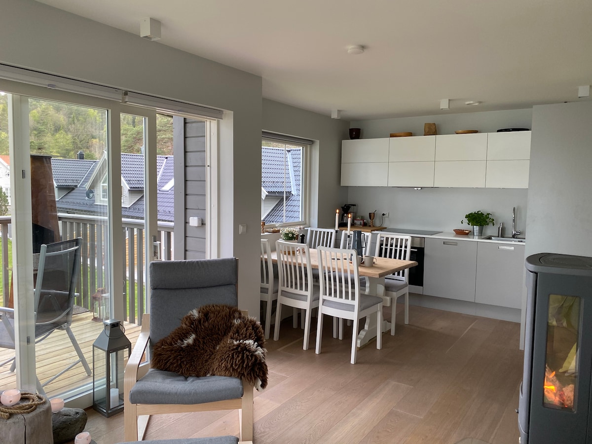 Gawdi akkomodazzjoni waħda jew aktar f' dan l-appartament il-ġdid. Salott u kċina kbar li jagħtu fuq il-bajja u l-fjord. Kamra tal-banju b' madum tajjeb. Kollox fuq livell wieħed. Twieqi kbar li jipprovdu ħafna dawl ftit metri 'l bogħod mill-baħar. Paċifiku u qrib in-natura. Xugamani u ħwejjeġ tas-sodda inklużi. 6 km biss 'il bogħod minn Sørlandsbadet. Possibbiltà li tikri dgħajsa.