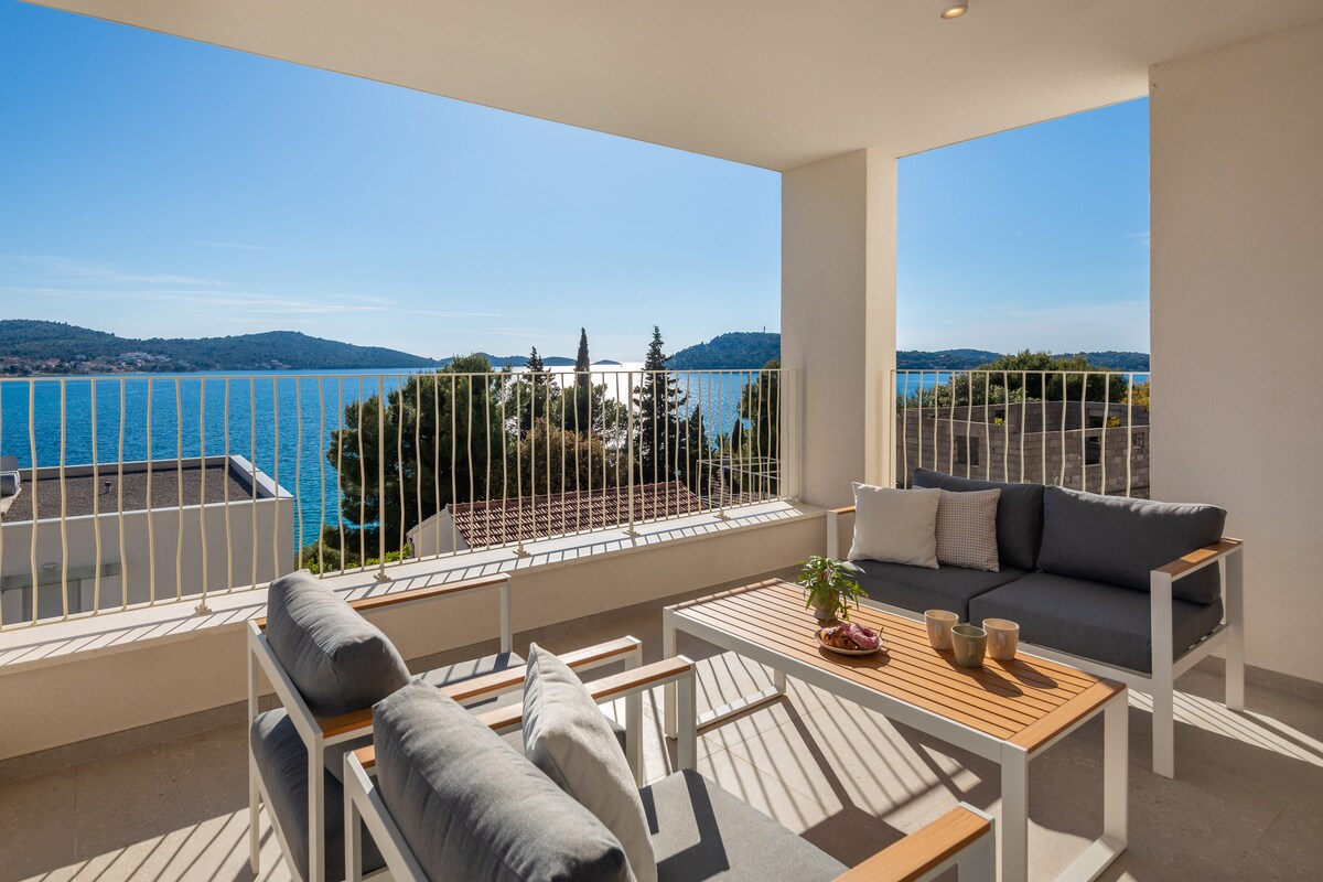 Royal huwa appartament ġdid, modern u lussuż rinnovat b 'jacuzzi, 50 metru' l bogħod mill-bajja. Għandu 50 metru kwadru u 30 metru kwadru terrazzin. Jiġi b' 2 ikmamar tas-sodda, salott, kċina kompletament eqipped b' żona tal-ikel, kamra tal-banju b' doċċa mill-aqwa, faċilitajiet tal-barbikju, garaxx(karozza waħda) , TV b' skrin ċatt f' kull kamra u wi-fi bla ħlas. Toffri terrazzin kbir b 'veduta tal-baħar miftuħa fuq il-gżejjer tal-madwar. Għadis jista 'jitgawda fil-qrib. Trogir jinsab 5 km 'il bogħod u l-ajruport ta' Split 8 km' il bogħod mill-akkomodazzjoni.
