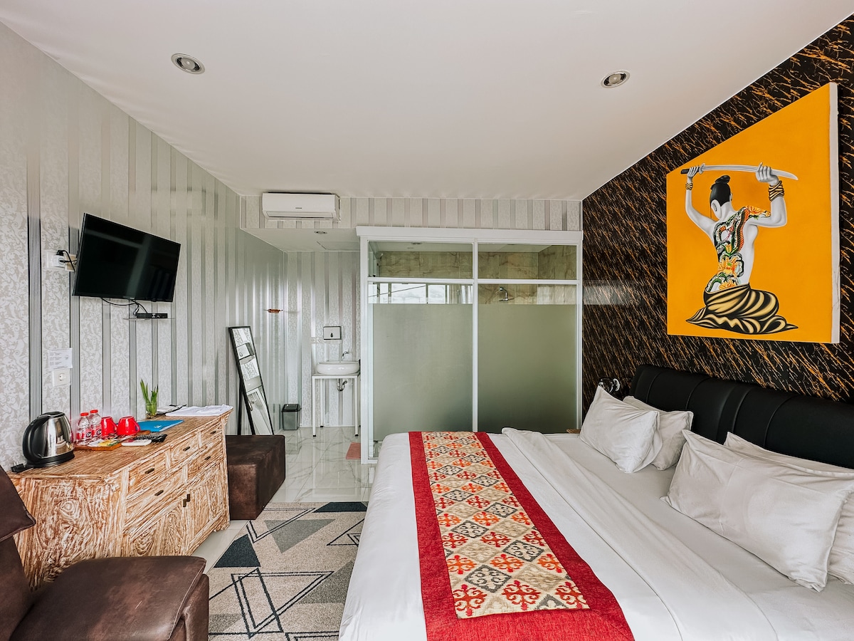 Hemm 9 suites disponibbli għalik biex tagħżel skont id-disponibbiltà, kull kamra għandha l-istil tagħha. Daqs tal-kamra 23 m² mgħammra b' : kamra tal-banju b' doċċa u prodotti tal-indafa personali bla ħlas, AC, ilma sħun, skrivanija, xugamani, WiFi bla ħlas. Xi kmamar huma mingħajr twieqi L-appartament jinsab 7 km 'il bogħod mill-Pjazza Seminyak u l-Bajja ta' Petitenget. L-Ajruport Internazzjonali ta' Bali Denpasar jinsab 20 km 'il bogħod mill-akkomodazzjoni