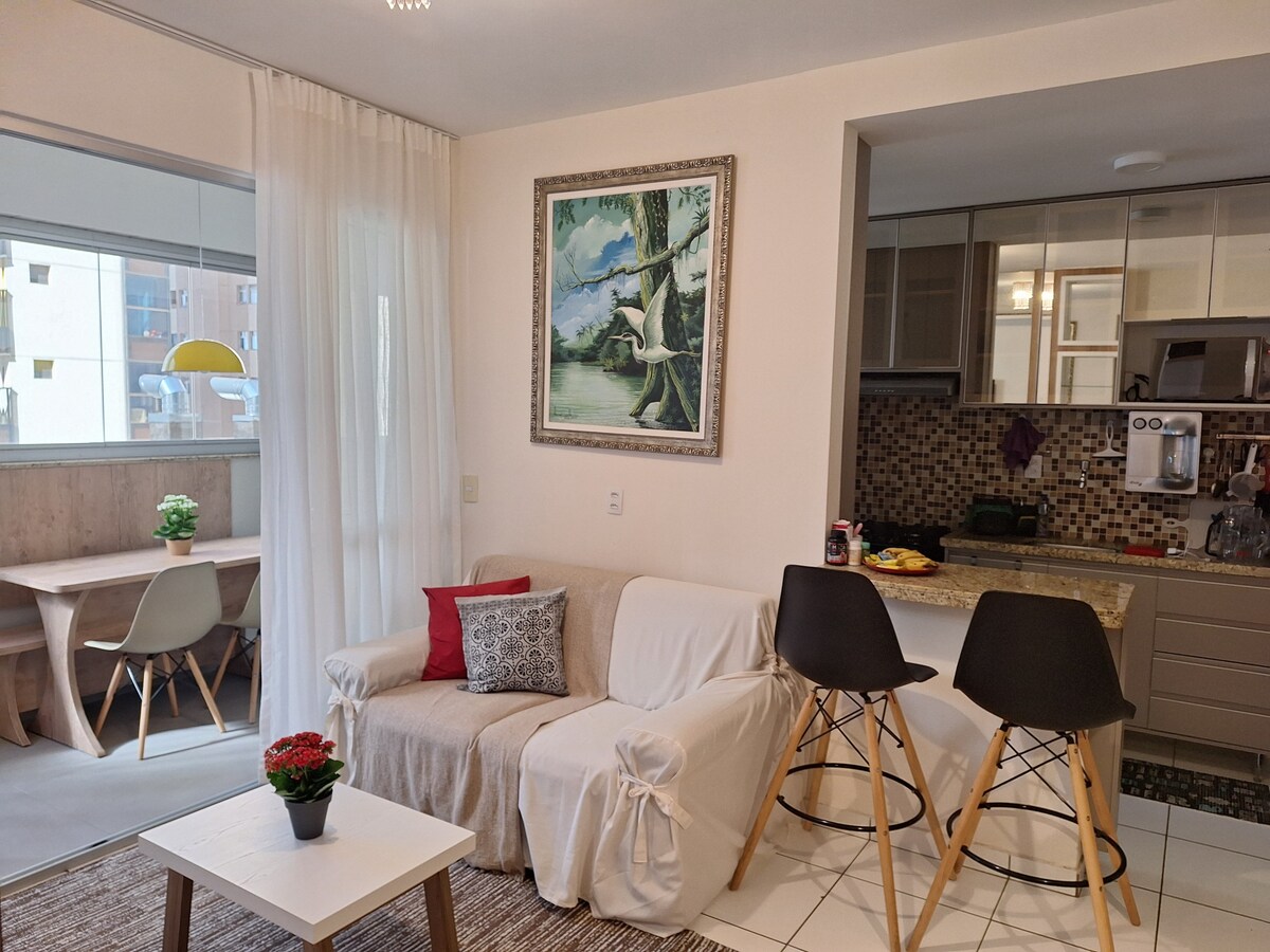 Gawdi l-aħjar post ta' Águas Claras, il-forn huwa 4 minuti u s-subway hija 6 minuti bil-mixi. Appartament b' garaxx mgħotti, ħasil sħiħ fl-unità, gallarija bl-iskrin, kċina mgħammra, sodda u lożor tal-banju disponibbli. Wifi Tajjeb ħafna, Smart TV 55 ‘. Suite b' arja kkundizzjonata u tapit żejjed, salott b' sufan fiss ta' 2 m. Dan kollu quddiem Park Ekoloġiku! App sabiħa u kompluta ħafna għalik biss!