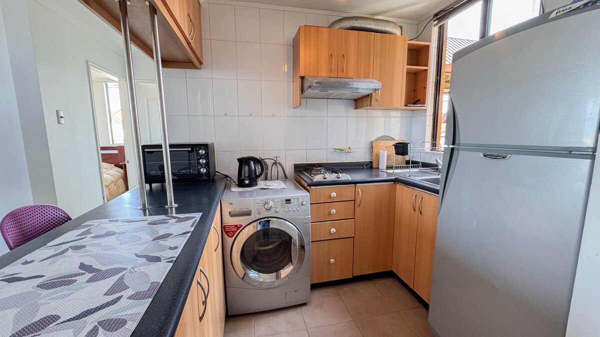 Depto sabiħ ġewwa Hualpén, il-provinċja Concepción, , ideali għal vjaġġi turistiċi mill-aqwa Concepción jew għal vjaġġi tax-xogħol, 8 minuti mill-Każinò Marina del Sol, 8 minuti mill-Mall del Trébol, 15-il minuta minn Centro Concepción, 15-il minuta minn Caleta Lenga. F 'kondominju privat esklussiv, veduta sigura u kwieta u sabiħa. Mgħammar għal 2 persuni Kċina mgħammra b 'kollox. Pixxina Ħasil tal-ħwejjeġ $ Elevator Gymnasium(concierge tal-booking ta' qabel) Post tal-parkeġġ sal-bieb, BioTren fil-qrib.