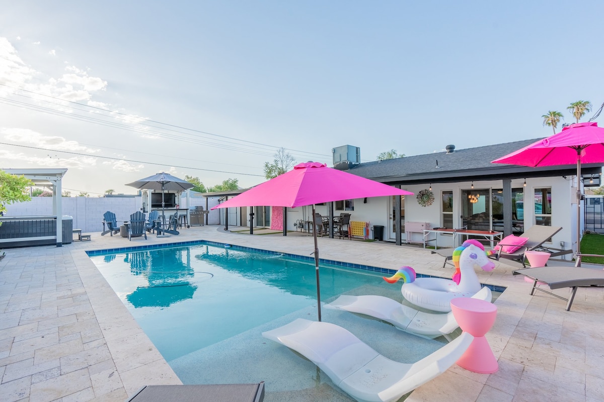 "Vacation Mode" Activated! Relax in style at this Mojave inspired poolside retreat! Remodeled w/ open concept and a dreamy desert aesthetic, this 3 bedroom, 2 bath home will keep you and your guests endlessly entertained. Enjoy outdoor Arizona living at it's best, lounge poolside with your own private cabana, catch up with your friends, BBQ w/ the fam, take a selfie with our scottsdale mural or hang in the hammock! PRIME location- only 2 miles away from all the Old Town hot spots!