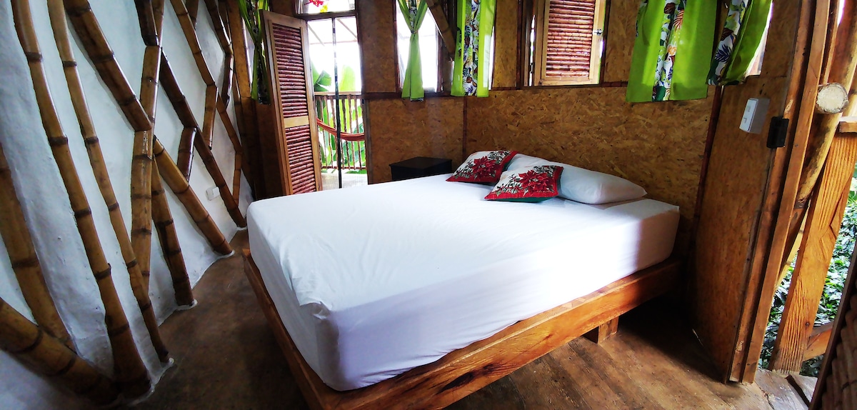 Hermosa y cómoda habitación dentro el paisaje cafetero. Cama doble fabricada en madera de la finca, baños amplios, agua caliente, mirador con vista a los cafetales, observatorio del café, tour cafetero, café bar con experiencias sensoriales, fogón artesanal con preparaciones ancestrales, avistamiento de las aves del café. vive un café en el cafetal y una noche en el cafetal. Quédate en este alojamiento único y disfruta de los sonidos de la naturaleza.