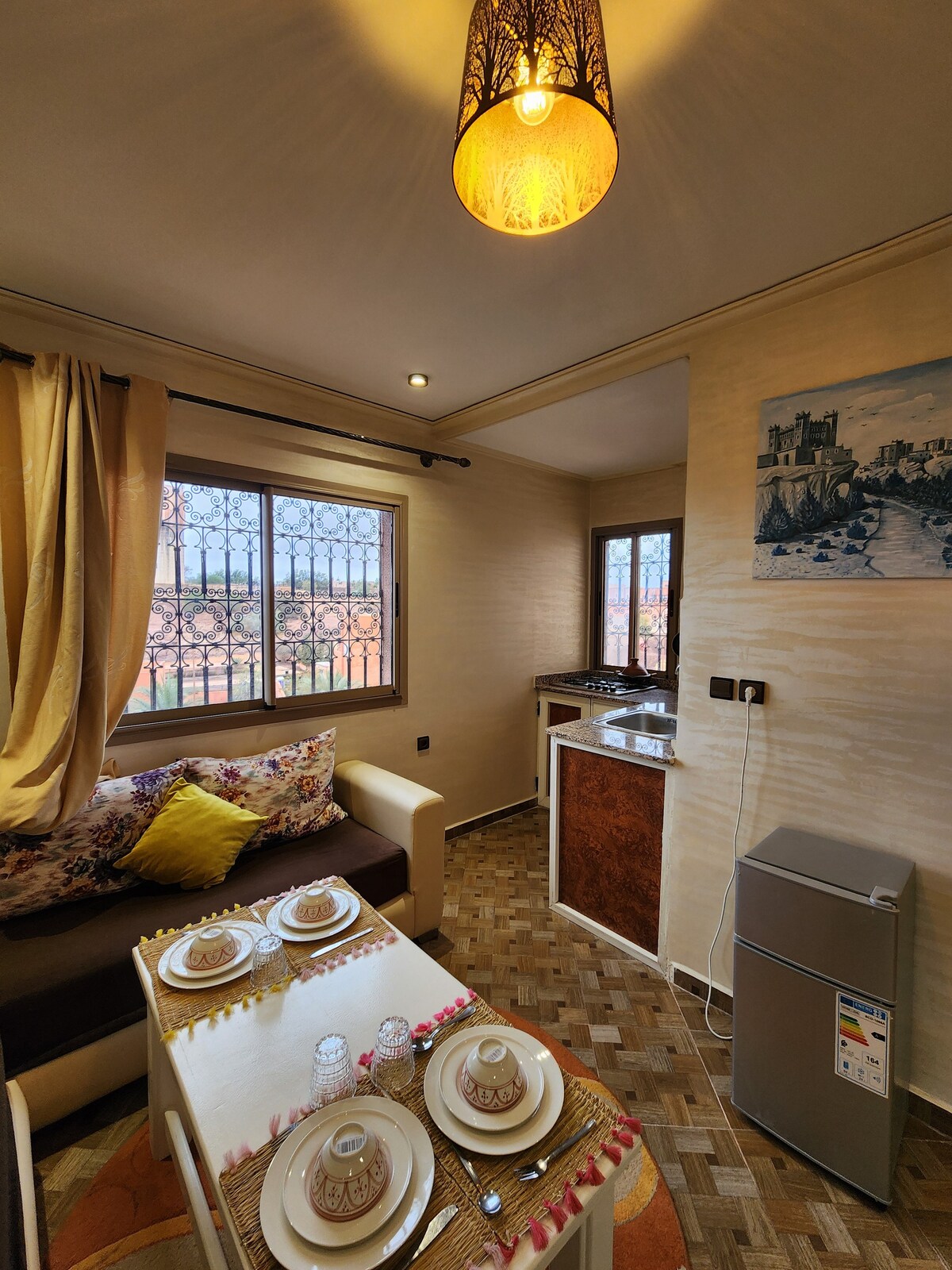 Nestled fil-qalba tal-belt ta 'Ouarzazate, l-appartament komdu tagħna joffri taħlita perfetta ta' kumdità u konvenjenza għaż-żjara tiegħek. Kemm jekk inti vjaġġatur waħdek, koppja li qed tfittex vaganza romantika, jew grupp żgħir ta 'ħbieb jew familja, l-ispazju attraenti tagħna huwa mfassal biex iħossok daqslikieku qiegħed id-dar.