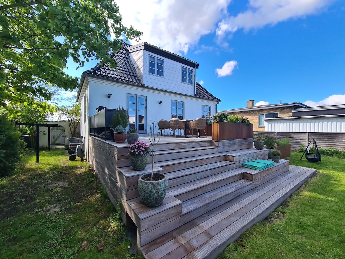 Villa li għadha kif ġiet rinnovata u addattata għall-familja f 'ambjenti kwieti fi Dragør - 20 minuta biss bil-karozza' l bogħod minn Kopenħagen. Ftit minuti mixi lejn qabża f '/ resund u qrib iċ-ċentru tal-belt antika idilika ta' Dragør. Tlett ikmamar tas-sodda kbar b 'sodod doppji u kamra għat-tfal. Żewġ kmamar tal-banju b' doċċa, art imsaħħna u banju. Kċina kbira li taħdem u salott komdu. Ġnien ħelu b 'terrazzini li jistgħu jintużaw. Magna tal-ħasil u dryer. Wifi veloċi u TV bil-cable.