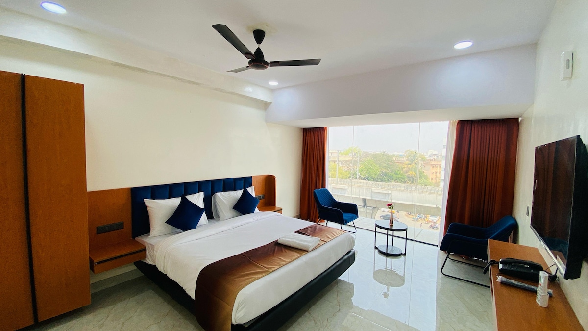 Tinsab fil-qalba tal-belt ta 'Hyderabad, tixtieq toqgħod f' Dash Hotels. Billi jinsabu fiċ-ċentru qrib it-toroq ta 'Kachiguda X, il-klijenti għandhom aċċess faċli għal Hussain Sagar View Point, Charminar, il-Mużew ta' Salarjung u ħafna iktar għal din il-belt rikka u kreattiva. Aħna noffru kamra tas-sodda doppja 'king' b' kamra tal-banju mwaħħ Kull kamra hija ddisinjata għal esperjenza bħal dar u għandha wkoll l-aħħar teknoloġija, inkluż Smart LED tv b 'aċċess għall-pjattaformi OTT kollha, konnettività tal-Wi-Fi u eċċ.