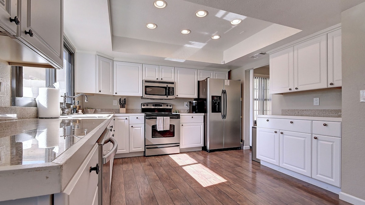 POST!!! Imfassla kompletament mill-ġdid fl-2018, kabinetti ġodda tax-shaker bojod, countertops tal-kwarz, tagħmir li ma jissaddadx, art tal-plank tal-injam, tapit u kmamar tal-banju ġodda. Dal-post komdu għandu l-kumditajiet kollha tad-dar inkluż spazju apposta fejn tista 'taħdem. Il-kaptan għandu sodda king komda, sinkijiet doppji u gallarija kbira. Il-klijent għandu sodda doppja 'queen' u huwa stess fil-kamra vanity. Sufan Queen sleeper f 'kamra kbira w/TV kbir. Terrazzin għandu BBQ. Tiftaħ għaż-żona tal-ħaxix u l-pixxina. WIFI veloċi, kejbil, DVD player u ħwejjeġ għall-ħasil tal-ħwejjeġ. **HOA tagħlaq il-pixxini Oct-May**