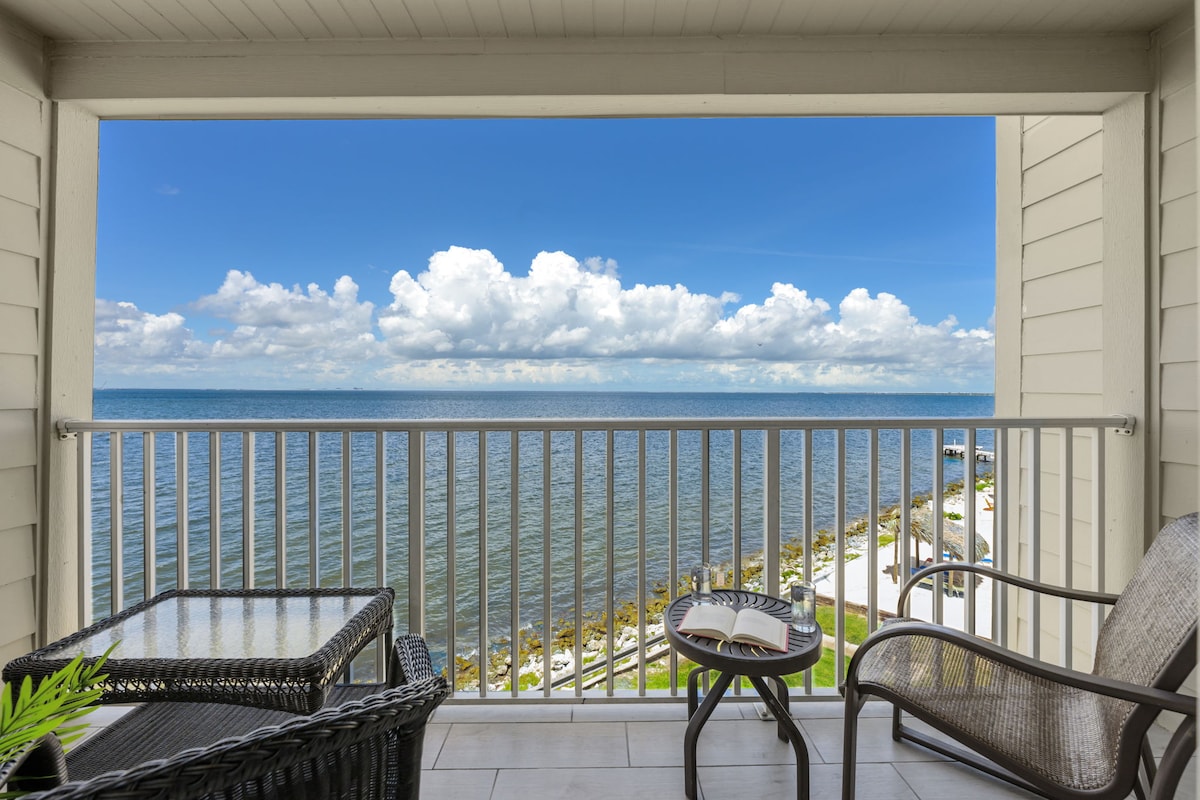 Kondominju faċċata tal-ilma b 'veduti ta' nżul ix-xemx ta 'Tampa Bay.