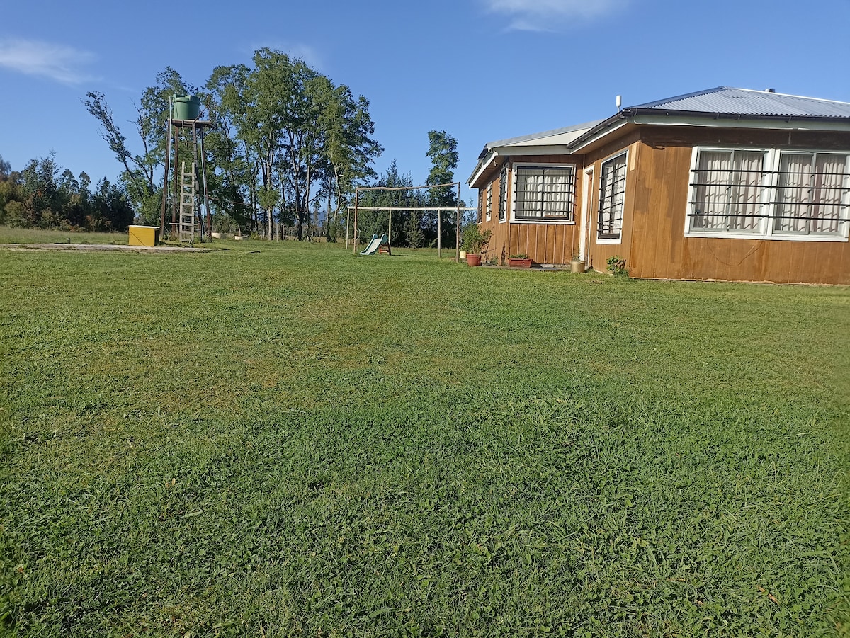 Relájate con toda la familia en este alojamiento donde la tranquilidad se respira. Tendrás una vista privilegiada libre de ruidos y edificios o casas aledañas . Especial para hacer un break de camino al sur si vas en auto con familia. Lee bien, no se guíen por el mapa! A solo 10 minutos de la carretera y a 45 km ANTES de llegar a Temuco . Pueblo más cercano, Perquenco a 14 km. Esto es CAMPO.