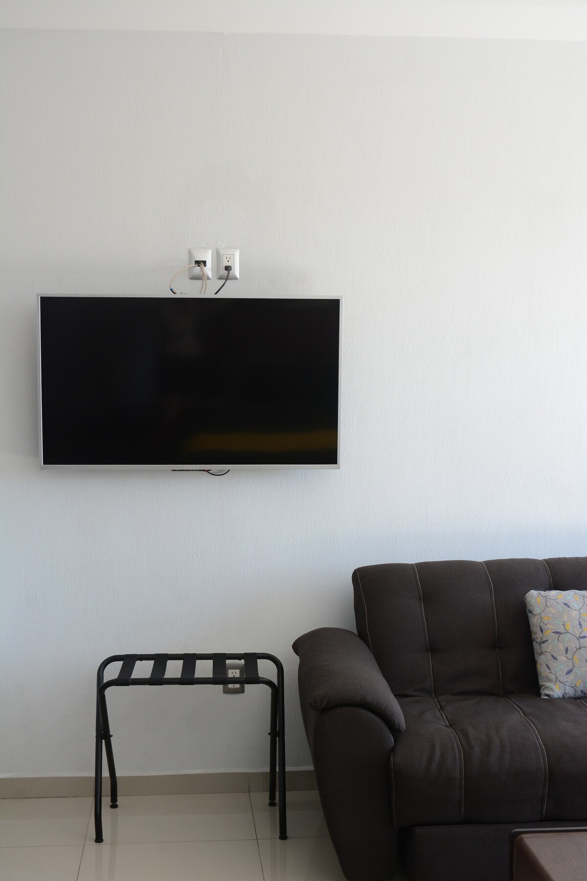 Pequeño departamento tipo loft con 1 cama king size, cocineta con estufa eléctrica, lava trastes, microondas, frigobar y utensilios básicos de cocina (cucharas, cuchillos, vasos, tazas, etc), comedor, estancia, tv, maletero, mueble para colgar y doblar ropa, baño completo y balcón con increíble vista panorámica. Además el rooftop que está en el último piso está disponible para todos los huéspedes, ahí podrás tener una maravillosa vista panorámica de la ciudad y ver el bello atardecer 🌅