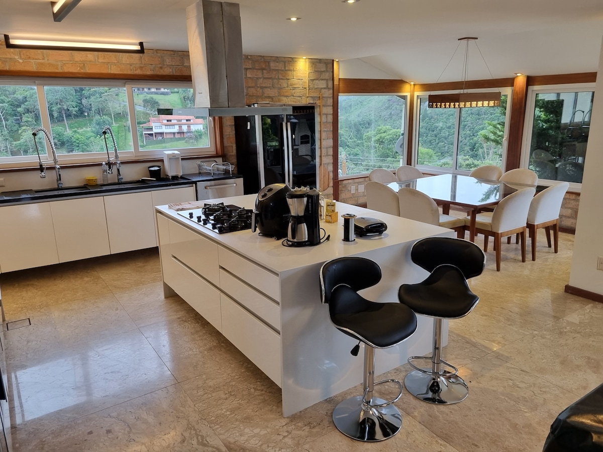 Cabana da Serra RJ ġiet iddisinjata biex toffri lill-klijenti esperjenza unika b' ċinema fuq barra, whirlpool, barbecue u fireplace għal jiem kesħin. Aħna niġbru l-iktar kumdità u privatezza flimkien biex tkun tista' tgawdi lilek innifsek, mal-imsieħba jew mal-imsieħba tiegħek, mal-familja jew mal-ħbieb. Id-dar tinsab f' kondominju b' gym, grawnd tar-ramel, art għal-logħob u fireplace tal-art. Huwa (bil-karozza) 15-il minuta 'l bogħod minn Centro u 21 minuta' l bogħod minn Alto.