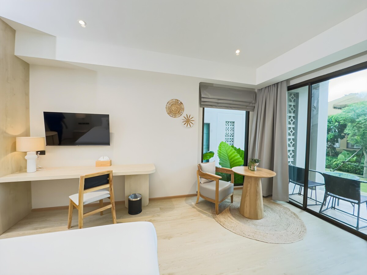 For discerning guests, especially couples in search of intimacy and romance, Villa Boonsri is the perfect choice. Resembling the majestic sails of a yacht, the villa's double-arched roofs impart a unique charm to the expansive 150 m² space. Nestled within a private garden, each villa offers views of tropical gardens and Casuarina trees lining the beach.
