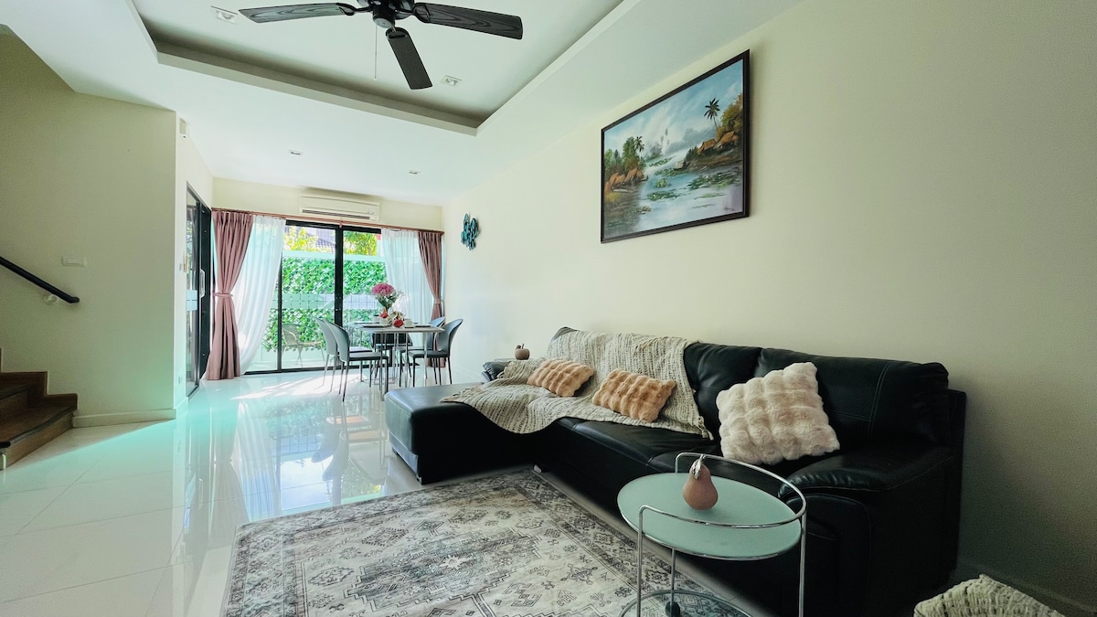 * NETFLIX BLA ĦLAS GĦALL-KLIJENTI TAGĦNA * Villa Ġdida Sħiħa ġewwa Cherngtalay - BangJo. Mgħammra b' kollox u tajba għall-koppji, għall-familji jew għall-grupp ta' ħbieb sa 4. Il-kumditajiet kollha huma ġodda fjamant u dejjem nodfa. Se tkun tista' tgawdi ħafna spazju b' 2 ikmamar tas-sodda, 3 ikmamar tal-banju, pixxina fuq barra b' jacuzzi, ġnien kbir, żona privata għall-parkeġġ għall-karozzi/muturi, BBQ, magna tal-ħasil, 65' TV... litteralment dak kollu li se jkollok bżonn għaż-żjara perfetta u rilassanti tiegħek ġewwa Phuket. CCTV fi spazji fuq barra għas-sigurtà tiegħek.