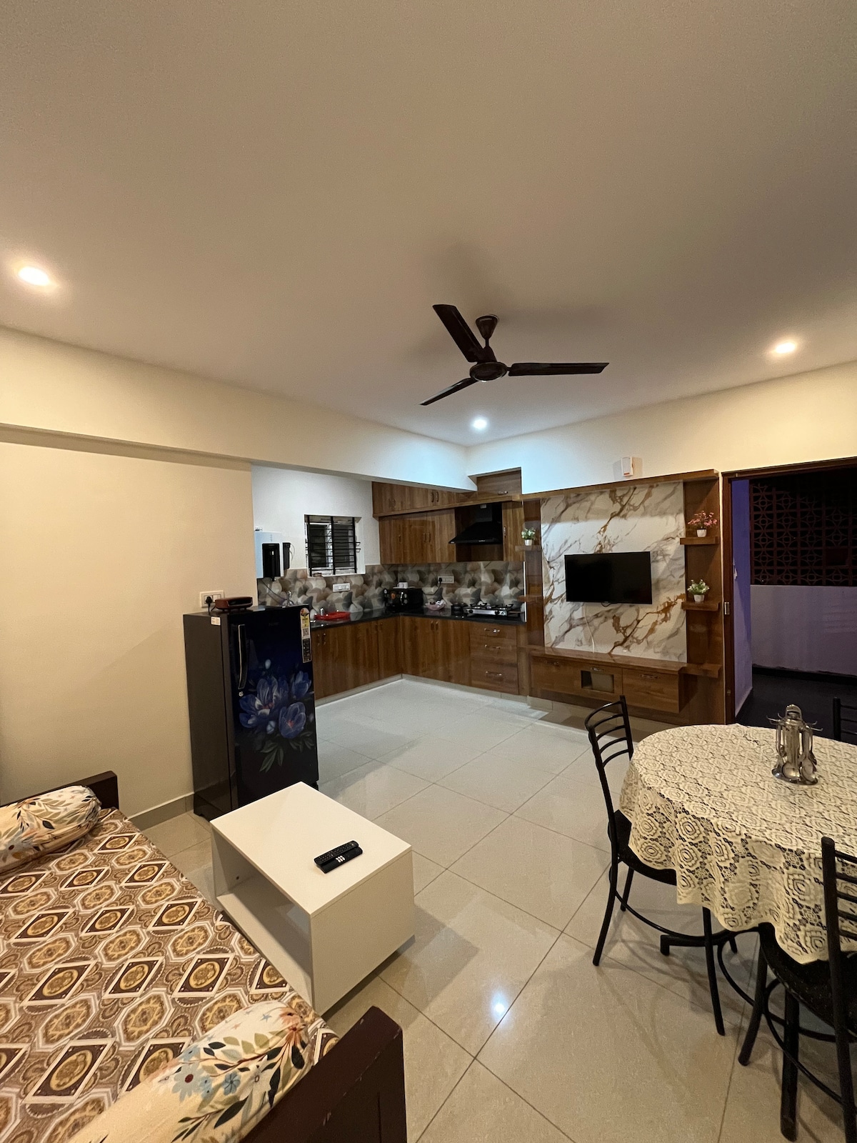 Merħba fl-appartament ġdid fjamant u spazjuż tagħna b' 2-BHK, ideali għall-familji u l-koppji li qed ifittxu l-kumdità u l-konvenjenza. Il-kmamar tas-sodda għandhom sodod qishom queen b' saqqijiet ortopediċi u AC għal irqad ta' lejl mistrieħ. Irrilassa fis-salott kbir b' Smart TV ta' 43 pulzier, WiFi veloċi ħafna u żona apposta għall-ikel. Jiġi b' żewġ kmamar tal-banju nodfa ħafna mgħammra b' affarijiet essenzjali għall-banju. Il-kċina mgħammra b' kollox tinkludi appliances u kutri ta' kwalità għolja għall-avventuri kulinari tiegħek.