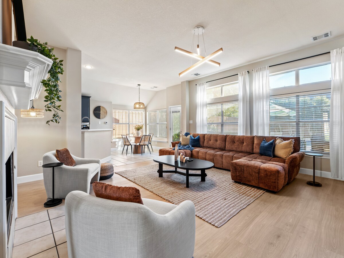 • 2 minuti sa Five Star Complex, 7 minuti sa Grandscape, 10 minuti sa Legacy West, ikliet u iktar! • Terrazzin tal-bitħa mgħotti wara ħajt twil taċ-ċedru • Magna tal-ħasil fuq il-post + dryer • Kċina mgħammra b 'kollox • Adattat għat-tfal, w/Pack and Play, highchairs u platti għat-tfal • Stazzjon tal-kafè apposta • Inbidel kompletament fl-2024 • Parkeġġ bla limitu fit-triq • Apparat ġdid fjamant (magna tal-ħasil, dryer, firxa, friġġ) • 1,500 pied kwadru, sular wieħed