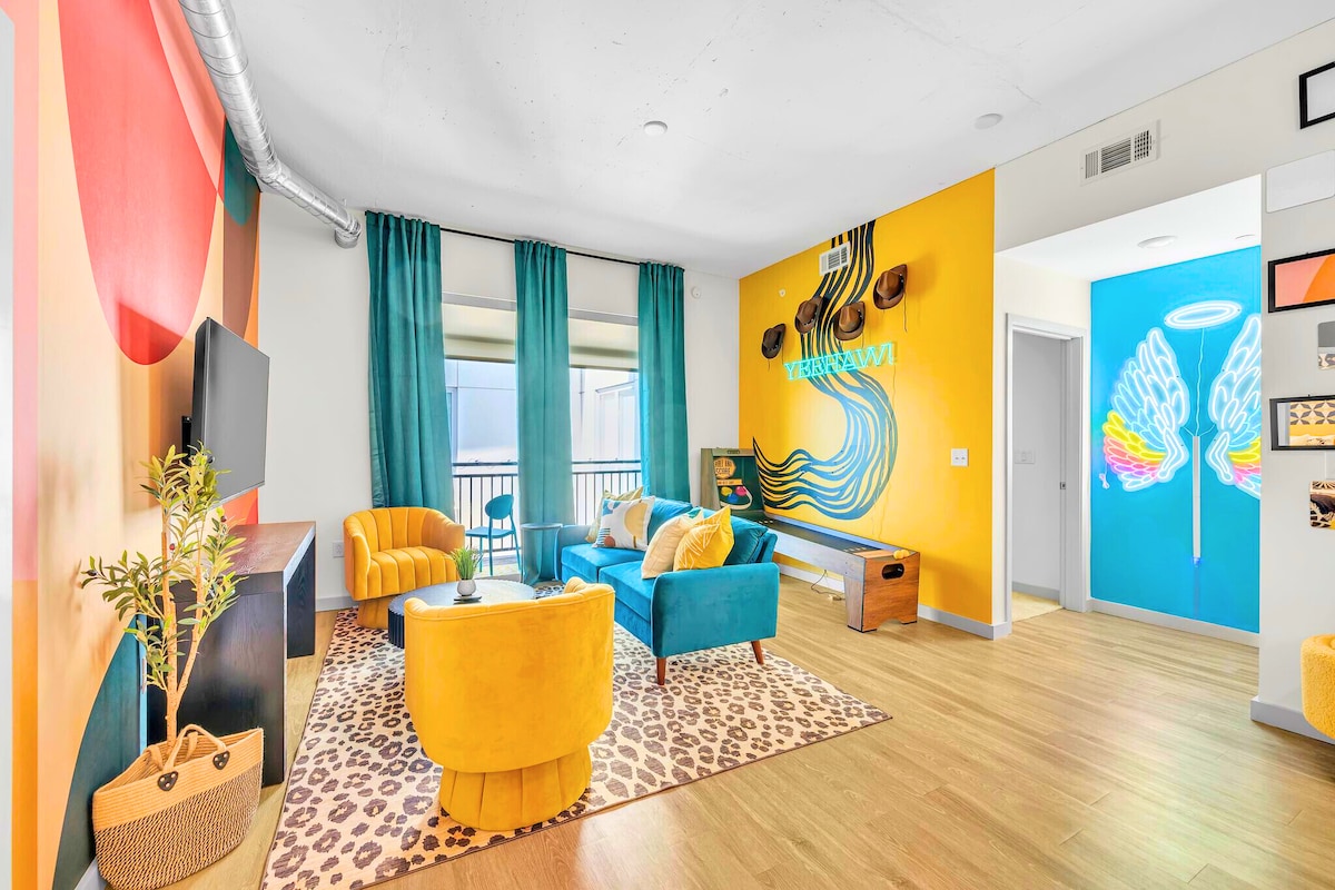 Irrilassa f' ħarba kuraġġuża u indulġenti fiċ-ċentru tal-belt b' disinn personalizzat u dekor eklektiku biss 2 blokok 'il bogħod minn Broadway. Ir-residenza spazjuża fiha sodda KING u sufan QUEEN pullout, kċina sħiħa, bar tal-kafè u parkeġġ bla ħlas. Il-klijenti jgawdu minn aċċess għal pixxina fuq barra, ċentru tal-fitness, ħajt għat-tixbit u bitħa bi grilji u ħofor tan-nar. Irrilassa fuq il-gallarija privata tiegħek b' veduta tal-belt b' kafè jew xarba ta' nbid filgħaxija! Spazju ġdid fjamant li jilqa' n-nies f' iktar propjetajiet fl-istess bini! STR2018073468