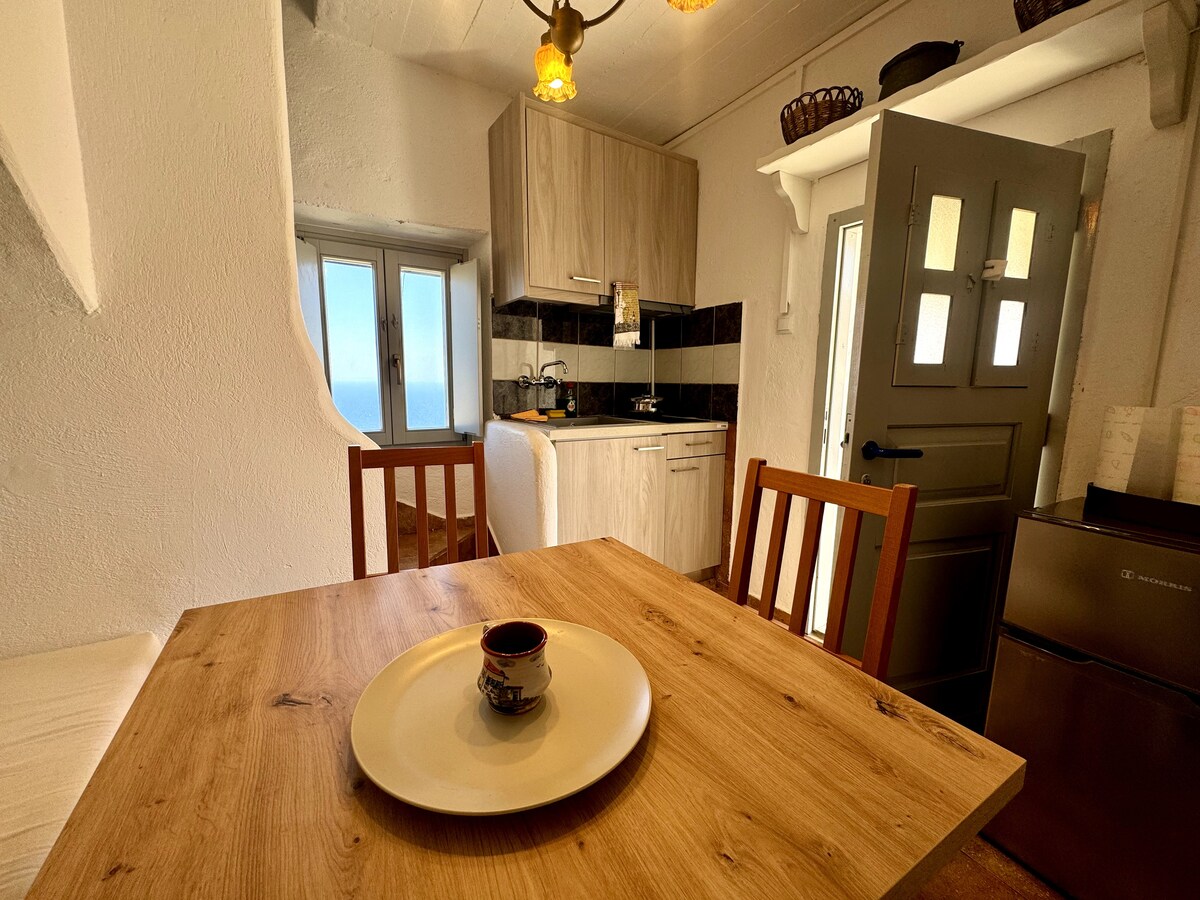 Irrilassa biex tagħmel vaganza unika lejn Anafi. Cottage ċikladika li tħares lejn Santorini u nżul ix-xemx biss 9 minuti (4.5 km) mill-pajjiż tal-gżira. Spazju rinnovat reċentement li jsegwi l-arkitettura tradizzjonali. L-akkomodazzjoni għandha bitħa b 'pergola biex tgawdi x-xenarju fis-sigħat kollha tal-ġurnata, forn tal-injam tradizzjonali kif ukoll kċina mgħammra b' kollox u kamra tal-banju. *Il-gable ta 'ġewwa tar-ritratt jista' jilqa 'persuna terza. L-ebda Wi-Fi
