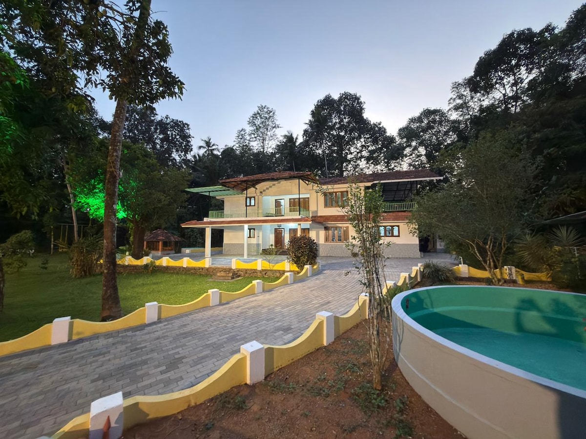 Din id-dar inbniet b' imħabba biex tirrifletti l-antenati tagħna Kerala Tharavadu - dar tradizzjonali tal-istil ta' wirt li tħallat l-arkitettura mingħajr żmien mas-sbuħija naturali. Madwar ħxejjex mimlija ħxejjex, kanali serji, irziezet tal-ananas vibranti u siġar tal-lastku, toffri post fejn toqgħod qalb in-natura. Siegħa u 20 minuta 'l bogħod mill-Ajruport Internazzjonali ta' Cochin Tista' tordna ikel minn Swiggy li jitwasslek fil-post. Hemm lukandi tajbin disponibbli 5 minuti 'l bogħod bil-karozza. 15-il minuta 'l bogħod minn Muvattupuzhya. 55 minuta 'l bogħod minn Infopark.