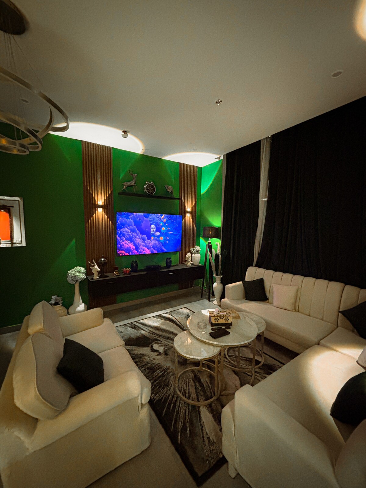 1600 square feet and access to mall ⦿Spacious luxury living room with a 65inch" QLED TV ⦿Soccer Table ⦿Two Bedrooms ⦿Self check ⦿Fully equipped kitchen ⦿On-site D-Watson,SecondCup,Bolt and Brodway 🛋 Comfort & Convenience ⦿24/7 heating & cooling (inverters) ⦿2 extra mattresses available ⦿Clean linens ⦿Your own personal Free parking space ⦿24/7 Backup electricity around the clock ⦿Visitors allowed ⦿Daily Cleaning ⦿Dedicated Smoking Area ⦿ Complimentary Water