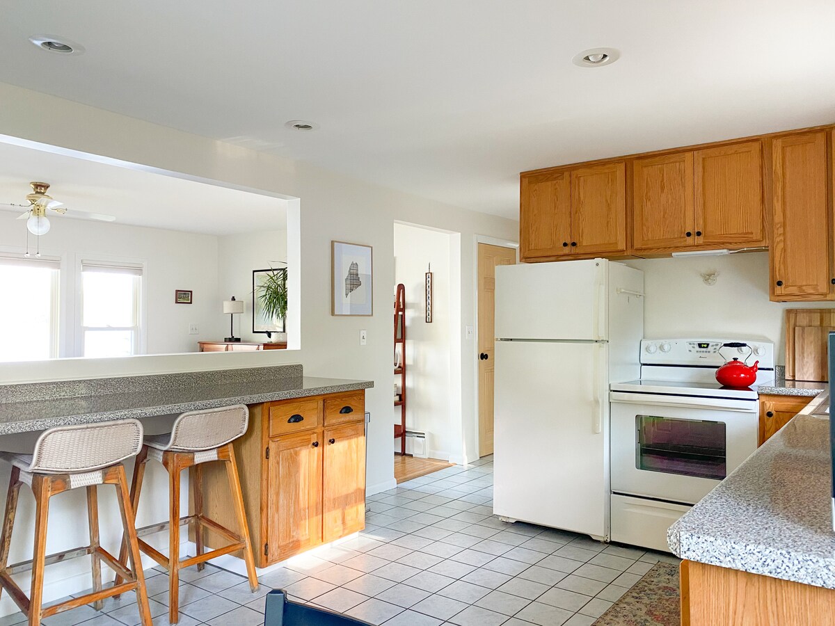 Ħarba lejn cottage b' qafas tal-injam tal-ħolm imdawwar fil-boskijiet ta' Maine! Qed nistennew it-travi, l-art imsaħħna b' mod radjanti, sodda king loft u fossa tan-nar bix-xquq. Duq il-kafè fuq wieħed miż-żewġ gverti, mixja fuq il-Muntanja ta' Bradbury (3 minuti 'l bogħod), ixtri Freeport (10 minuti' l bogħod), jew ikla ġewwa Portland (20 minuta' l bogħod) -imbagħad erġa' lura għall-ħabi komdu tiegħek taħt l-istilel. Kċina kompluta, soqfa vaulted, art tas-sħana radjanti, driveway privata, fossa tan-nar u veduti tal-foresti paċifiċi jagħmluha post ideali matul is-sena kollha.