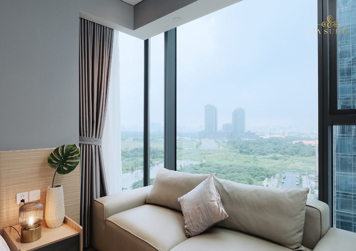 This 80m² 5🌟 luxury apartment is located in District 1, overlooking the river and the whole city, a prime location near Bui Vien, Ben Thanh Market and Nguyen Hue Walking Street within a 2km radius. The apartment has 2 bedrooms (3 beds, including 2 King beds 1m8x2m and 1 Queen bed 1m4x2m), 2 bathrooms and full facilities such as saltwater infinity pool, gym, dry and wet sauna. Enjoy the cozy feeling of being at home in this modern building.