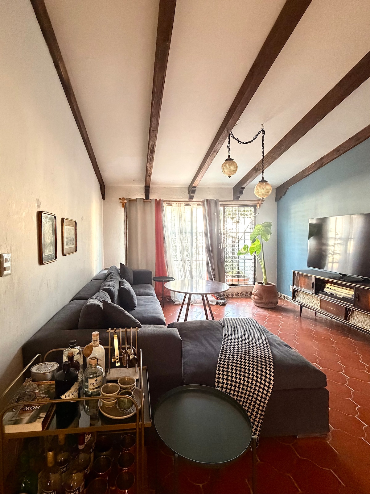 Crea recuerdos inolvidables en este alojamiento único y familiar, con interiores modernos, diseñado para quienes buscan confort y estilo en una ubicación privilegiada, estarás a unos pasos de cafés, restaurantes, galerías, ideal para parejas, ejecutivos, familia que deseen vivir una grata estadia en la ciudad. La recamara principal cuenta con baño privado con cristal templado, walking closet, cama king size, y ventanales de piso a techo con vista a la ciudad, medio baño extra y cocina equipada.