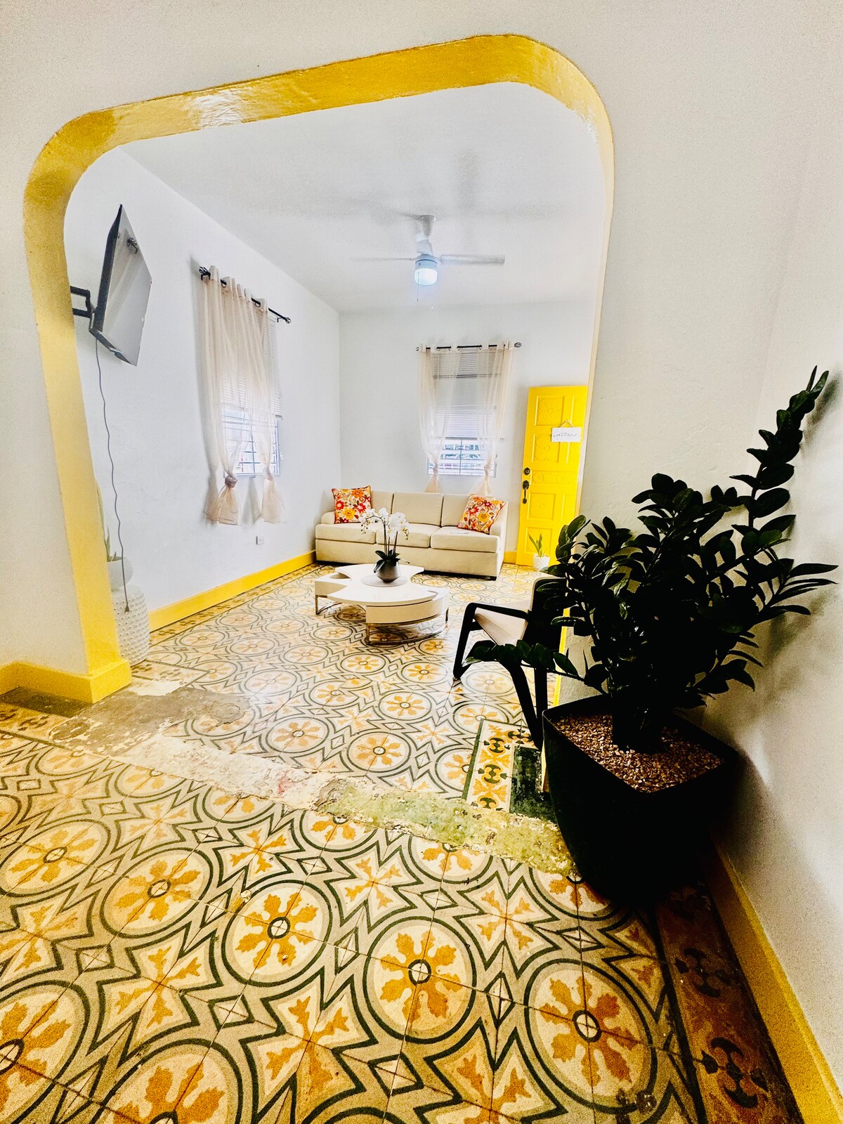 Irrilassa fiż-żona Metropolitana, 7 klijenti jorqdu fuq is-sodod fil-kmamar tas-sodda,u 2 klijenti biex jorqdu komdi ħafna fuq sufan fis-salott. Post paċifiku mgħammar b 'sodod ġodda fjamanti fuq il-kmamar kollha, il-kmamar kollha AC ġodda. Kmamar tal-banju/Kċina mmudellati mill-ġdid. Brand-new 55" HD TV b 'Amazon, & Disney+Plus. 5 minuti fuq il-vettura sa Punta Salinas Beach. 10 minuti mill-istazzjon Ferry/il-belt ta 'Cataño biex tmur lejn Storiku Old San Juan. Barra minn hekk, ristorant u Furnara fi żmien 4 minuti, 2-Biċikli fuq il-post.