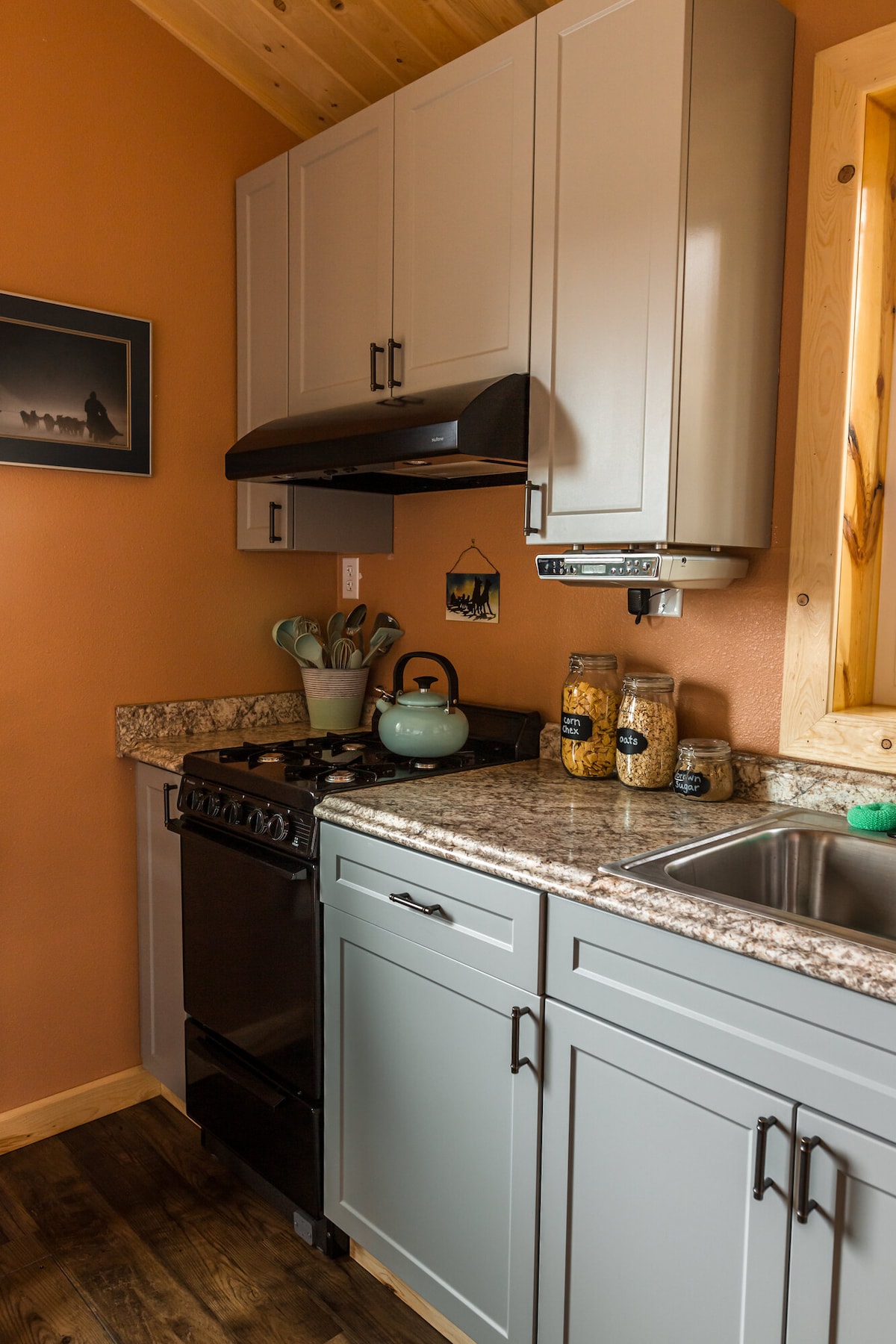 The well appointed cabin has everything you'll need for a perfect stay in Tok, Alaska, including a gorgeous view of the Alaska Range right outside your front window. Sink into the king size bed in a separate bedroom, cook in our full kitchen or use the BBQ grill on the deck. Enjoy a continental breakfast at your leisure with items stocked in the cabin, including Alaska wildberry granola and homemade jam. You'll feel right at home in our cozy cabin winter or summer in beautiful Tok, Alaska!