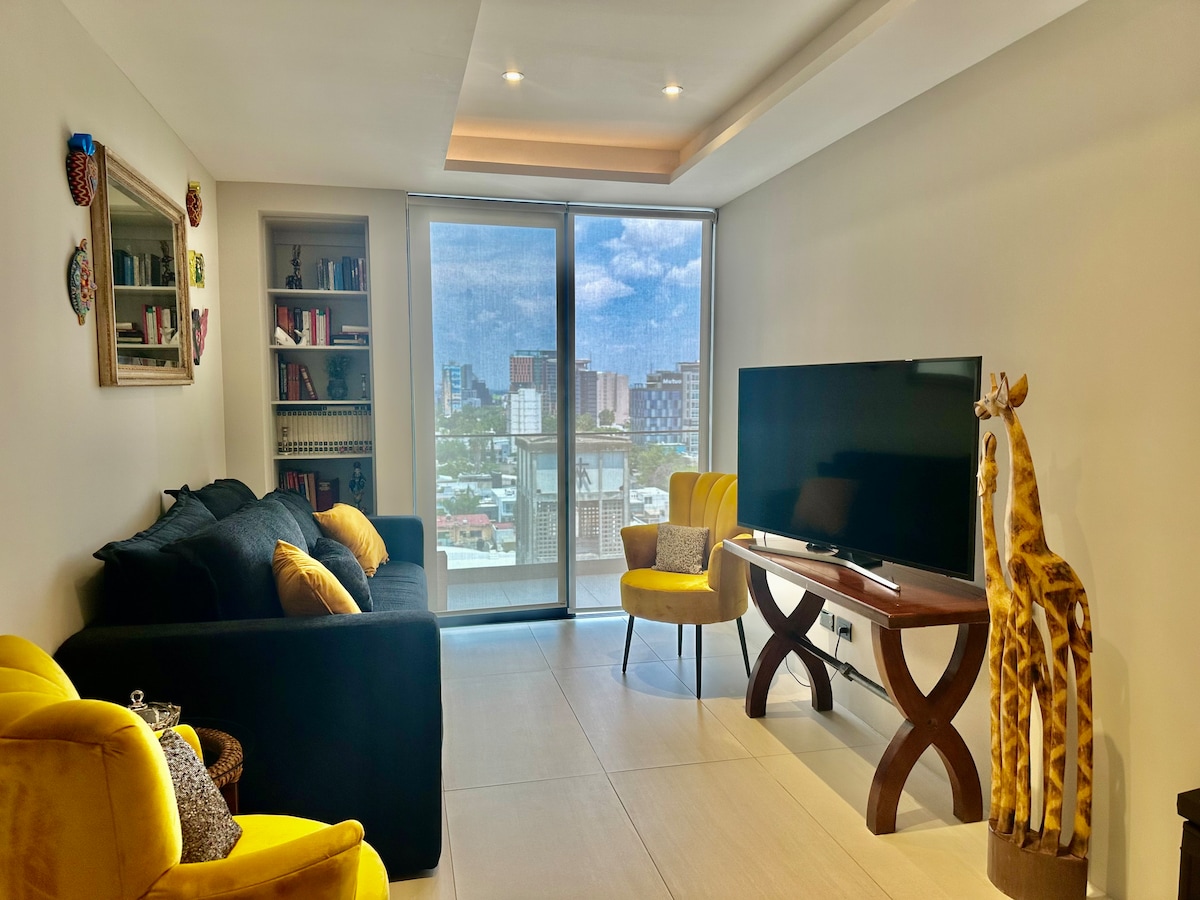 Appartament lussuż ġdid ġdid mill-isbaħ mgħammar b 'veduta panoramika lejn il-belt fit-12-il sular, għandu gym, żoni soċjali, ġnien tas-saqaf, terrazzin, ġonna, kamp tal-futbol, parkeġġ għal 2 karozzi, parkeġġ għal 2 karozzi, aċċess b' sigurtà ta' 24 siegħa, huwa qrib ħafna tas-sams, depot tad-dar, Zoo, 5 minuti minn Huentitán Canyon, 20 minuta miċ-ċentru tax-xiri, 15-il minuta miċ-ċentru, aċċess għall-iskejjel u rotot ewlenin tad-distribuzzjoni. 65"wifi screen, imżejjen b 'mod sabiħ netflix