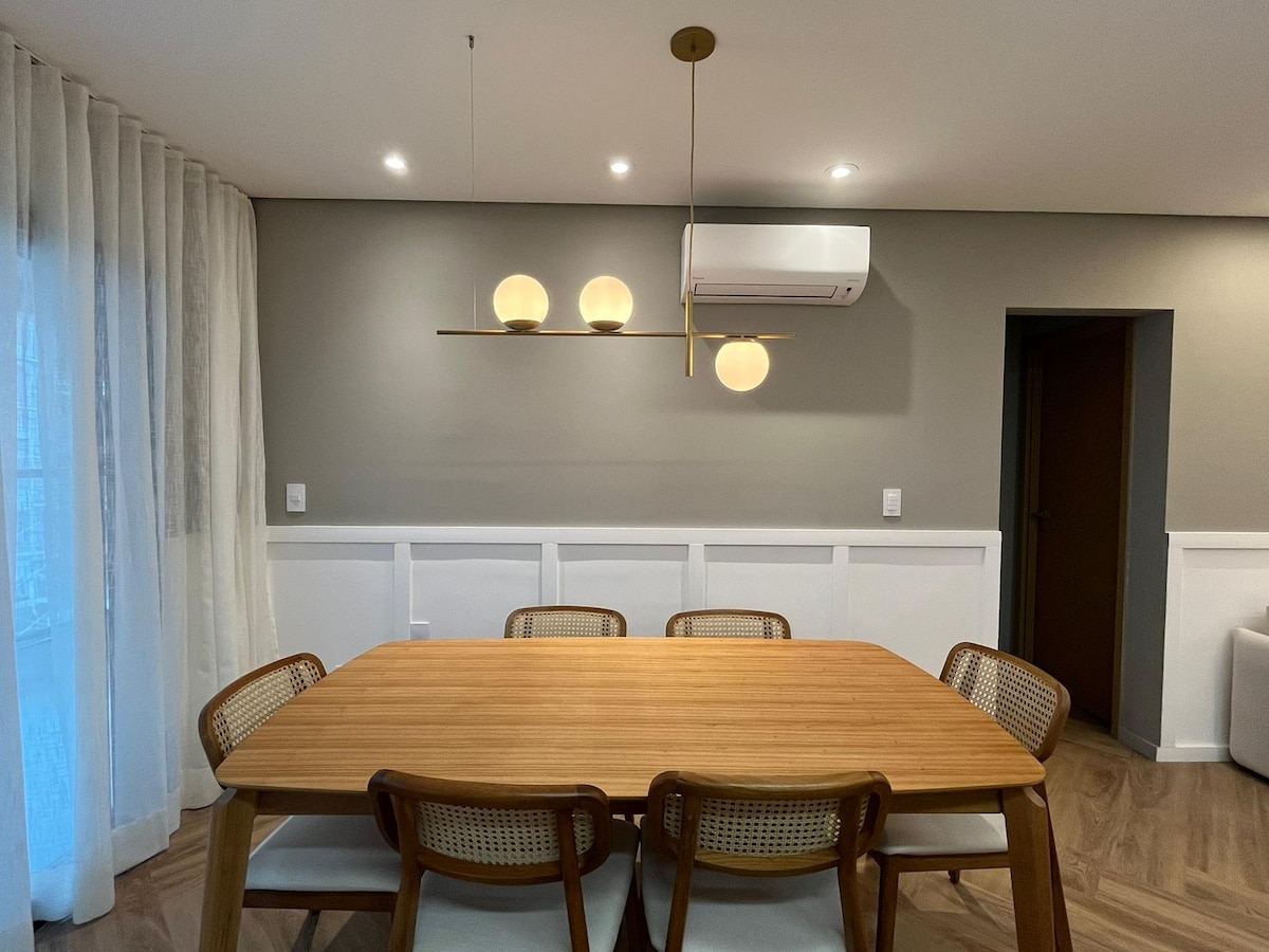 Apartamento novíssimo e completo, 150m da praia.
