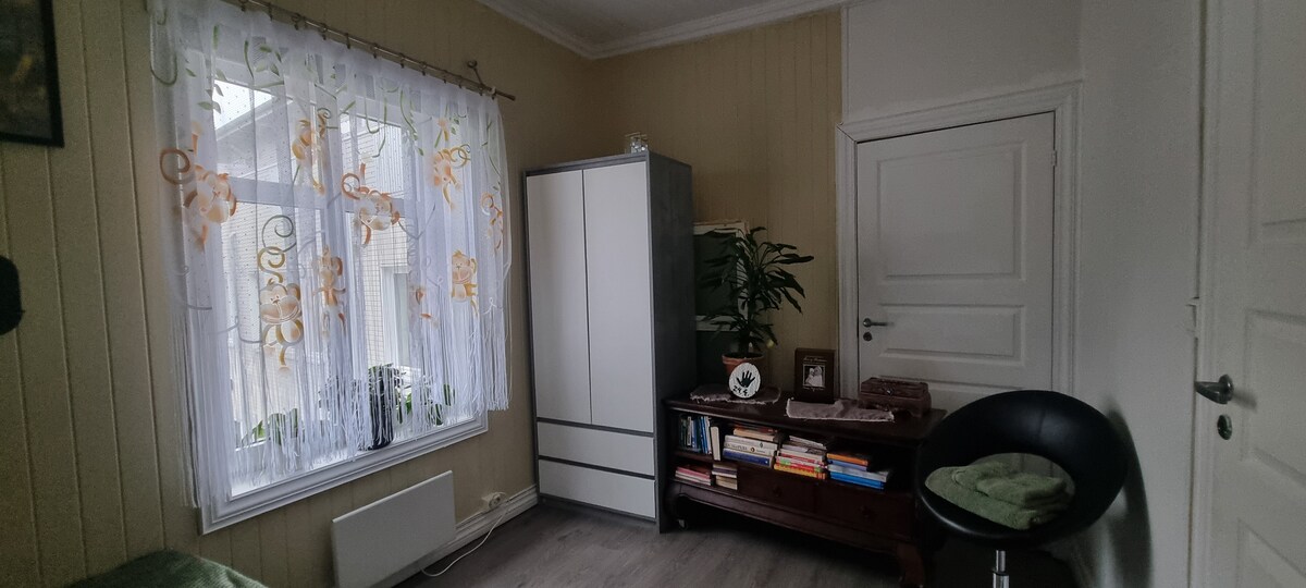Bo sentralt i ditt eget hus. 🚗 Egen parkering. 🌞 Terrasse med sol og utsikt. 🏡 Rolig og grønt nærområde – med et hint av byens puls.🚶♀️Gangavstand til sentrum, dagligvare, ishall, naturområder, buss- og jernbanestasjon. Hus ved vertsfamiliens bolig. Huset ligger nær sentrum og jernbanen, hvor toget innimellom kan høres. Det oppleves likevel som å bo på landet i byen 🏡🌳🚉 NB! Uegnet for små barn og personer med redusert førlighet grunnet bratt trapp. Lav takhøyde i 2. etasje.