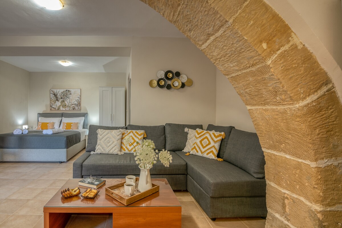 L-appartament Anaxagoras jikkonsisti f' kumpless residenzjali b' pjan miftuħ u huwa kkaratterizzat minn arkata oriġinali tal-Venezja, li tissepara l-kċina u ż-żona tas-salott mill-irqad. Għandu aċċess dirett għall-ġnien (privat) tiegħek b' barbecue u mejda tal-ikel kbira b' veduta tal-baħar. Kollox ġie rranġat b' ħafna imħabba għad-dettalji tradizzjonali fl-2017. Hawnhekk tista' tieħu n-nifs fl-istorja ta' Kreta f' atmosfera unika u komda.
