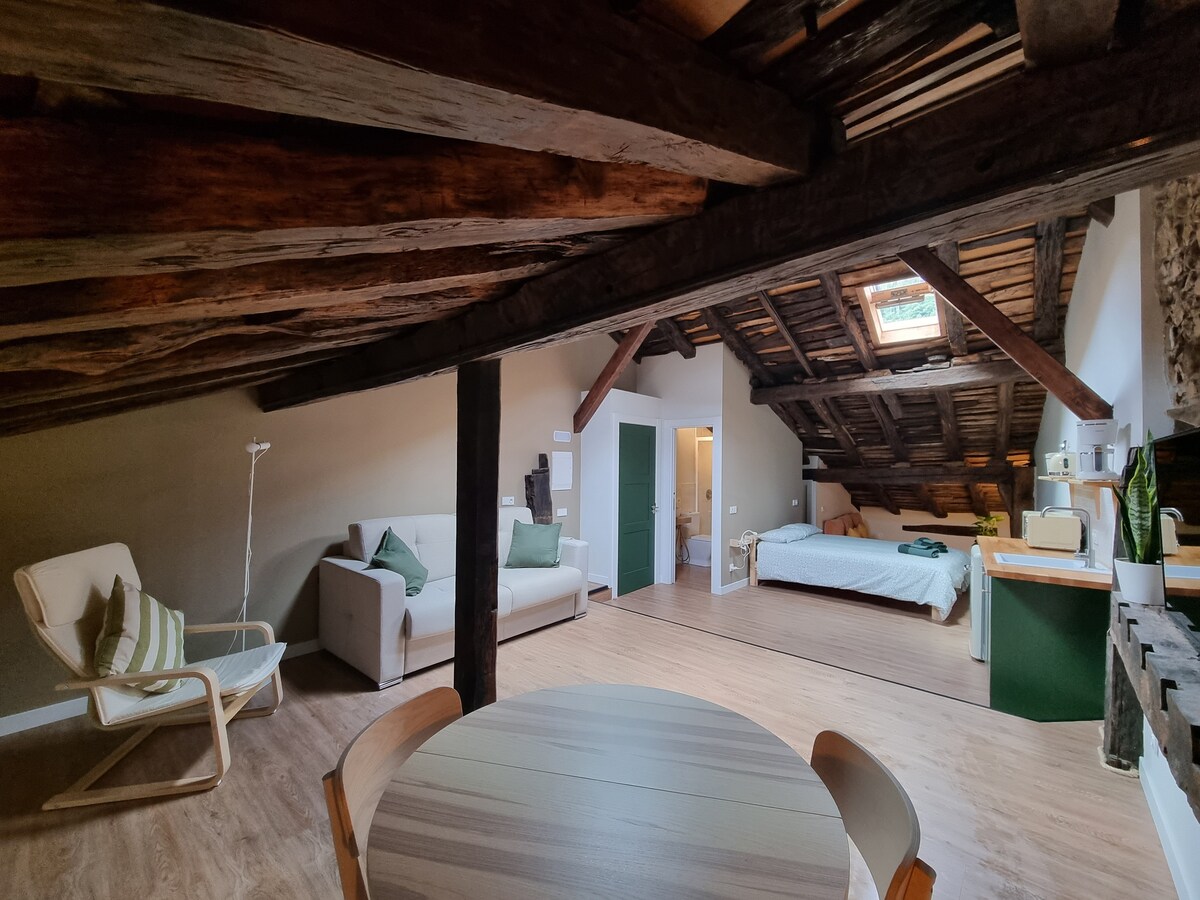 Loft ta' 55 m2 fiċ-ċentru tal-belt f' bini qadim li ġie rranġat dan l-aħħar, ħdejn il-mużew tal-arti moderna u l-librerija ta' Menéndez Pelayo. XL bed, 65"TV, Wifi , doċċa separata, kċina għandha forn, microwave, friġġ, ħiter tal-ilma, magna tal-kafè bil-kapsuli, ħadid, hair dryer, għodod Lekué għat-tisjir tal-għaġin u r-ross. L-ebda hob. Daħla separata bit-taraġ tal-aċċess għall-ewwel sular.