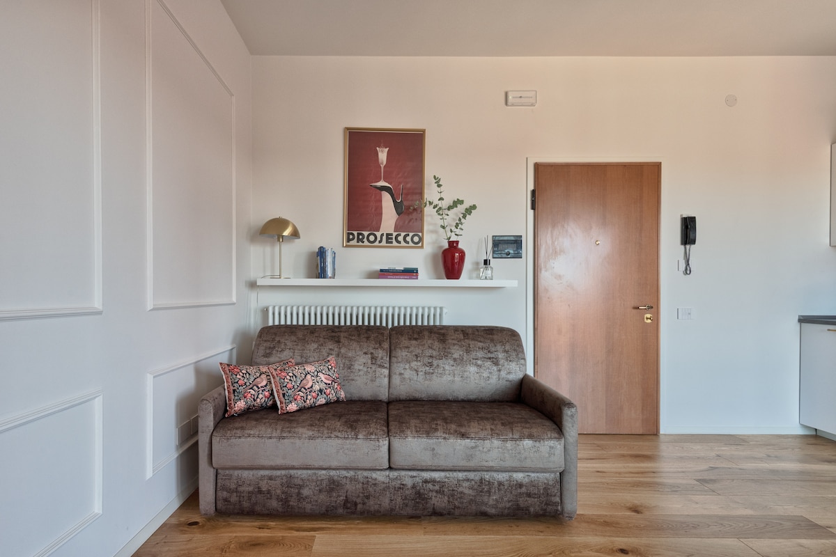 New apartment, 80 square meters, 2 bedrooms, 1 sofa bed (140cm), 1 bathroom and terrace. > PICK UP SERVICE FROM/TO AIRPORTS > 2ND FLOOR WITH ELEVATOR > TOWEL WARMER IN BATHROOM > WASHING MACHINE, HAIRDRYER, TELEVISION, MICROWAVE, IRON, OVEN > FLEXIBLE CHECK-IN FROM 4:00 PM > 500 meters from TREVISO CENTRALE train station > 20 MINUTES FROM VENICE by train > 15 MINUTES ON FOOT FROM TREVISO CENTER > FREE PARKING AT THE STREET