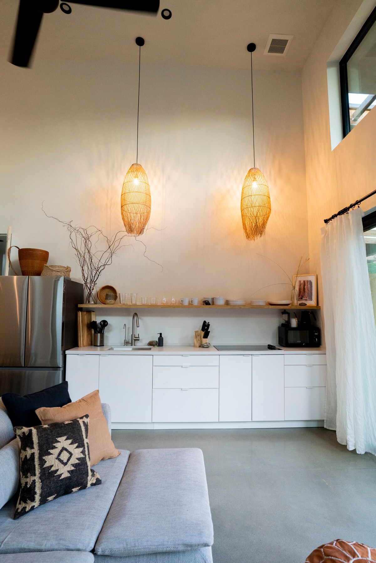 Imqiegħda b' mod grazzjuż tul ix-Xmara Kaweah, dan ir-ritratt modern jistiednek għal ritmu aktar bil-mod — fejn il-linja bejn ġewwa u barra hija mċajpra, u kull mument iħossu kkurat għall-kumdità u l-kalma. Ftit minuti mid-daħla tal-Park Nazzjonali ta' Sequoia! Filgħodu ibda bil-kafè fuq it-terrazzin, id-dawl tax-xemx jiffiltra permezz ta' siġar nattivi, u x-xmara tifforma bil-mod it-tempo tal-ġurnata. Wara nofsinhar huma biex tiskopri l-mogħdijiet fil-qrib jew issegwi t-tarf tal-ilma, filwaqt li filgħaxijiet iġibu magħhom stargazing u riflessjoni kwieta.