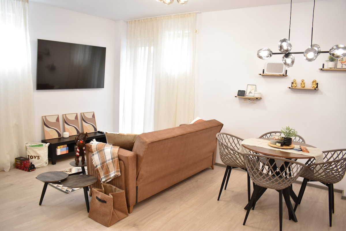 Appartament 🏡 ġdid, modern u kompletament mgħammar, ideali għal 6 persuni. Spazjuż, iddisinjat b' mod eleganti u l-faċilitajiet kollha kienu jinkludu: 📍 Qrib l-Ajruport ta' Therme u Otopeni 🅿️ Parkeġġ bla ħlas taħt l-art 🔑 Self checkin 📶 Wifi veloċi ❄️ Arja Kundizzjonatur 🧺 Magna tal-ħasil 🍳 Kċina mgħammra 🛏️ Kamra tas-sodda b' sodda qies queen 🛋️ Salott b' sufan sodda