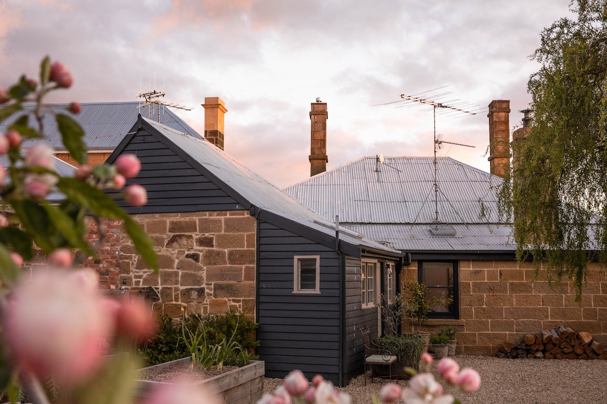 Cottage tal-ġebel c1833 kompletament rinnovata. 2 ikmamar tas-sodda (1 King , 1 Queen). Kċina ġdida bil-forn, 3/4 Fridge u magna tal-espresso. Kamra tas-salott/nar tal-injam separata. Għandu xi xquq viżibbli imma huwa sigur u komdu. Kamra tal-banju ġdida w/ħiter tal-ħajt u magna tal-ħasil. Dispożizzjonijiet ta' Kolazzjon Kontinentali Aċċessa ġnien privat ta' 2.5 ettari, gaġġa tal-berries, tjur u ġnien tal-frott. Post mill-aqwa, tul it-triq lejn is-supermarket IGA, kafetteriji u bank. Bażi ideali għall-vjaġġi ta' jum. Parkeġġ Barra mit-Triq. Wifi Bla Ħlas.