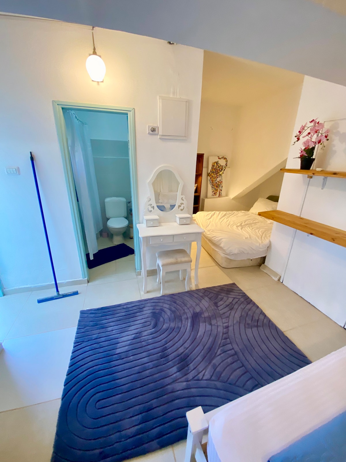 A large and beautiful room, perfect for romantic couple. Full privacy and private entrance . Comfortable shower and kitchenette, sunny and flourishing porch and large garden. Located in the center of Rosh Pina, near by the cinematheque, good restaurants, the old historic area and Vadi Rosh Pina. Tips for tours in the area will be given gladly.