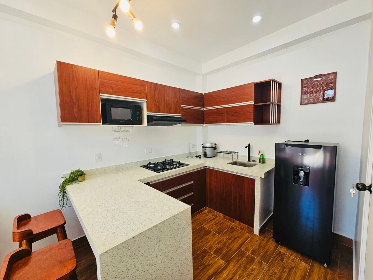 Bienvenido(a) a un espacio acogedor y ventilado, ideal para descansar y disfrutar de un ambiente familiar. El departamento es cómodo, luminoso y se encuentra dentro de un área tranquila, con acceso a un hermoso jardín y una refrescante piscina que podrás usar durante tu estadía. Este alojamiento es perfecto para viajeros que buscan comodidad, privacidad y un lugar relajante donde sentirse seguros