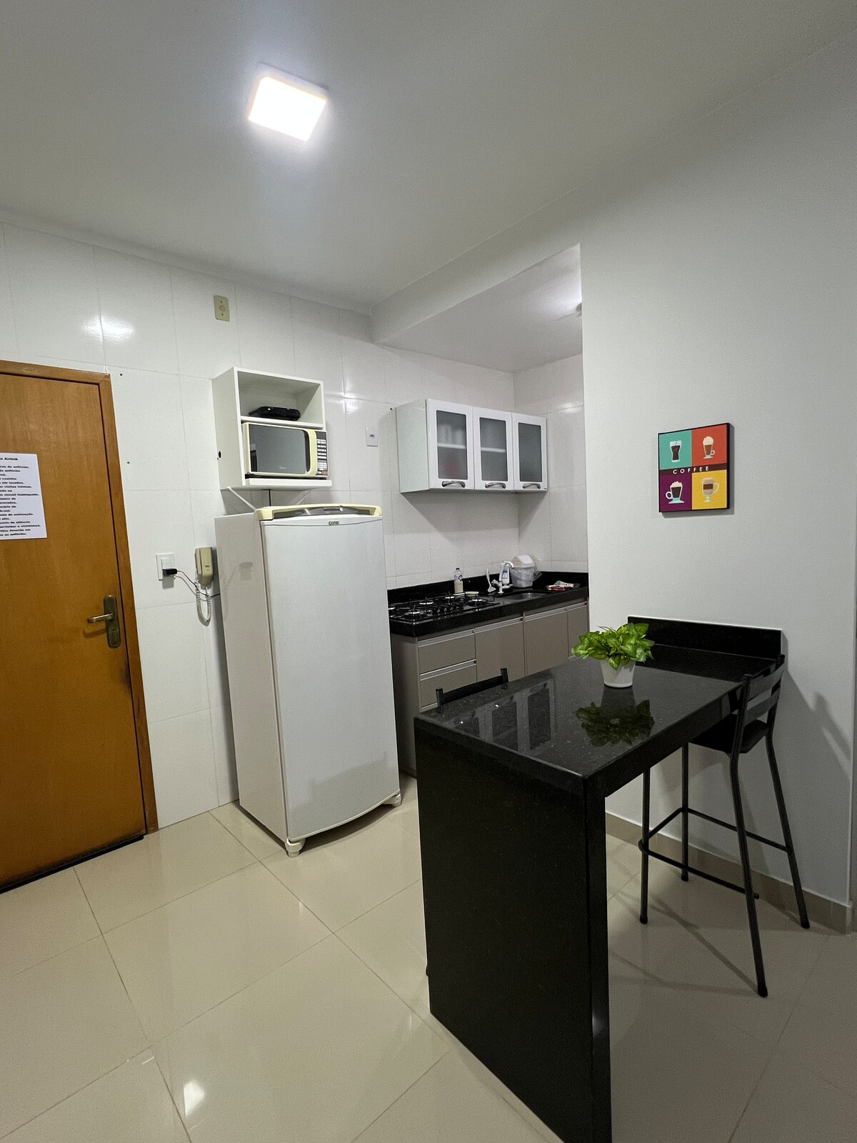 Merħba fil-vaganza tiegħek ġewwa Unaí! L-istudio huwa ddisinjat b’kunsiderazzjoni għall-iżgħar dettalji biex joffri kumdità u konvenjenza. L-ispazju jgħaqqad disinn modern, perfett biex tirrilassa bi stil jew saħansitra biex taħdem. Kamra tas-sodda komda Ambjent komdu, b’sodda kbira, dawl ġenn u purtieri li jiżguraw il-privatezza u l-mistrieħ. Kamra tal-Banju Sofistikata Wieħed mill-punti ewlenin huwa l-mera bid-dawl LED u disinn modern. Kċina Mgħammar b’dak kollu li teħtieġ: cooker, friġġ, magna tal-kafè u pożati.